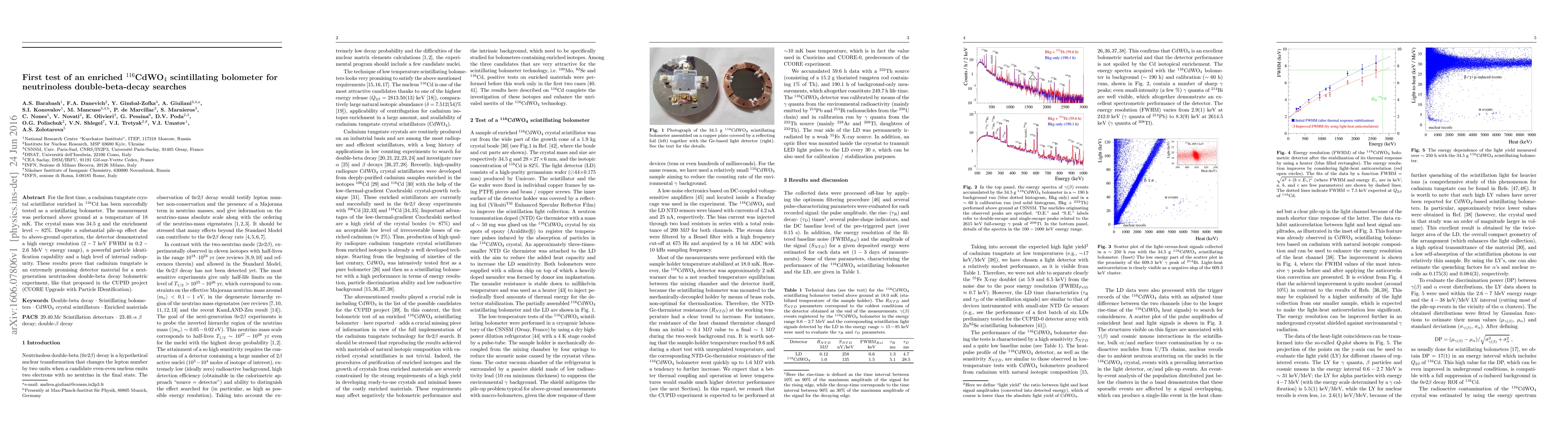 This paper reports the first test of an enriched $^{116}$CdWO$_4$ scintillating bolometer, demonstrating high energy resolution and radiopurity, despite pile-up effects from above-ground operation. The results suggest cadmium tungstate as a promising material for future neutrinoless double-beta decay experiments.