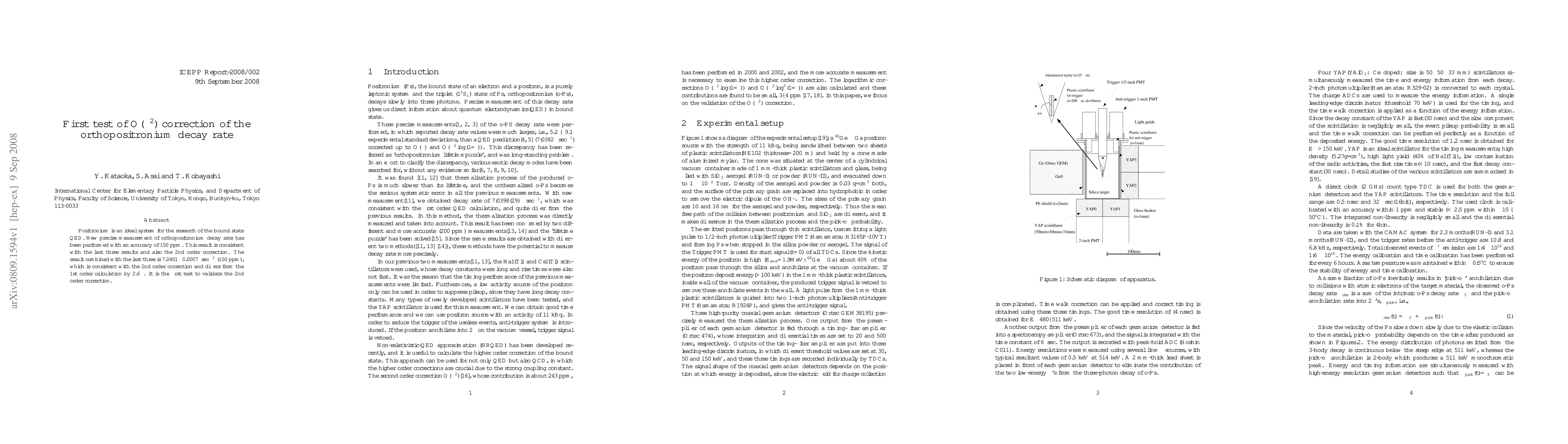 Positronium is an ideal system for the research of the bound state QED. New precise measurement of orthopositronium decay rate has been performed with an accuracy of 150 ppm. This result is consistent with the last three results and also the 2nd order correction. The result combined with the last three is 7.0401$\pm0.0007\mu \mathrm{sec}^{-1}$ (100 ppm), which is consistent with the 2nd order correction and differs from the 1st order calculation by 2.6$\sigma$ It is the first test to validate the 2nd order correction.