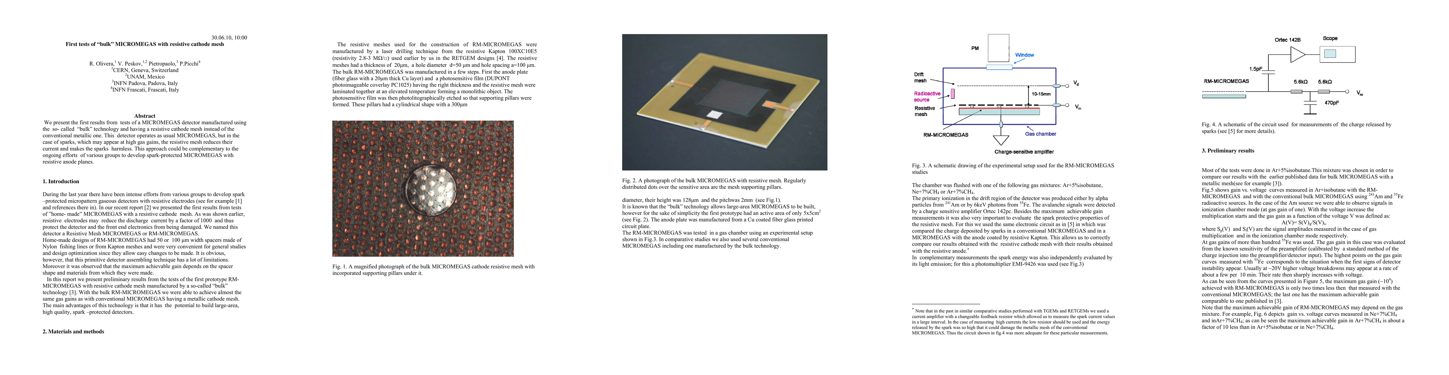 This paper reports initial results from tests of a novel MICROMEGAS detector utilizing "bulk" technology and a resistive cathode mesh, which mitigates spark currents and prevents damage at high gas gains, potentially complementing other spark-protection methods.