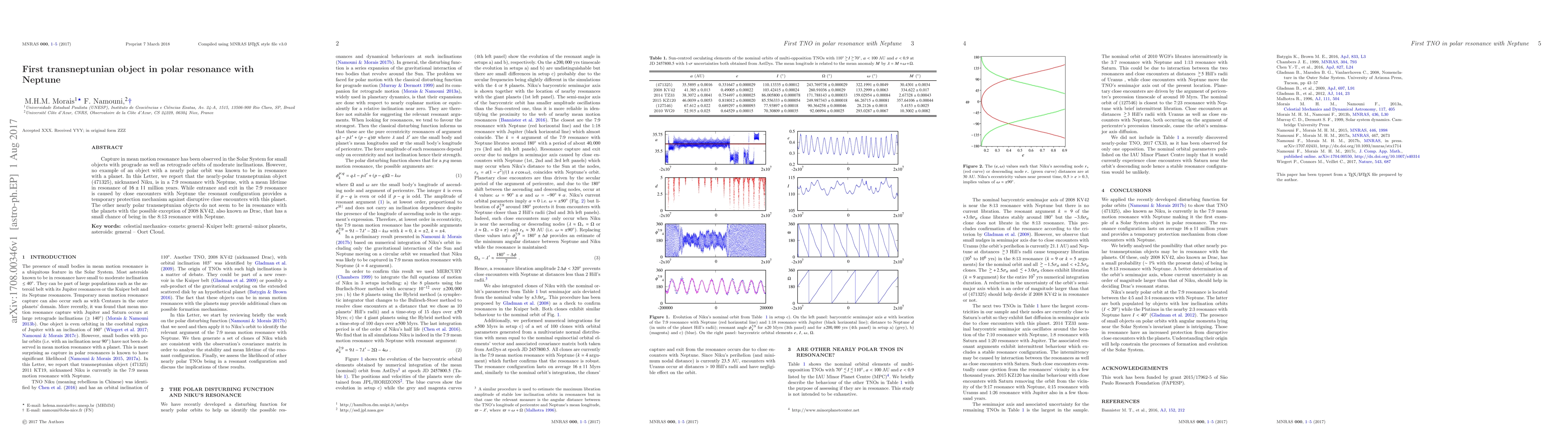 Capture in mean motion resonance has been observed in the Solar System for small objects with prograde as well as retrograde orbits of moderate inclinations. However, no example of an object with a nearly polar orbit was known to be in resonance with a planet. In this Letter, we report that the nearly-polar transneptunian object (471325), nicknamed Niku, is in a 7:9 resonance with Neptune, with a mean lifetime in resonance of 16 +- 11 million years. While entrance and exit in the 7:9 resonance is caused by close encounters with Neptune the resonant configuration provides a temporary protection mechanism against disruptive close encounters with this planet. The other nearly polar transneptunian objects do not seem to be in resonance with the planets with the possible exception of 2008 KV42, also known as Drac, that has a small chance of being in the 8:13 resonance with Neptune.