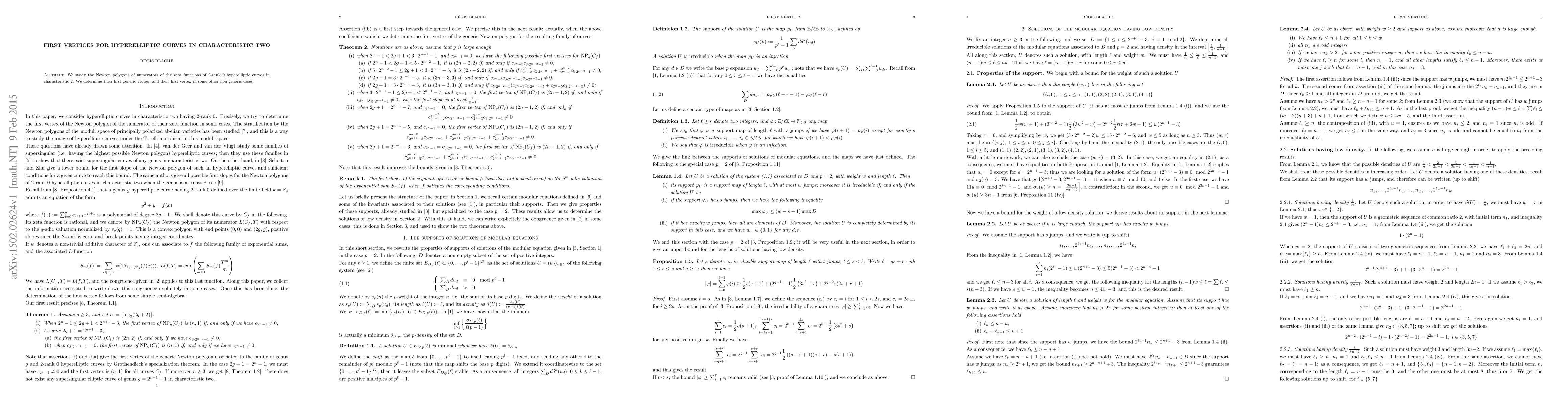 Summary: This paper examines the Newton polygons of zeta functions for hyperelliptic curves with $2$-rank $0$ in characteristic $2$, determining their first generic vertex and analyzing first vertices in selected non-generic cases.