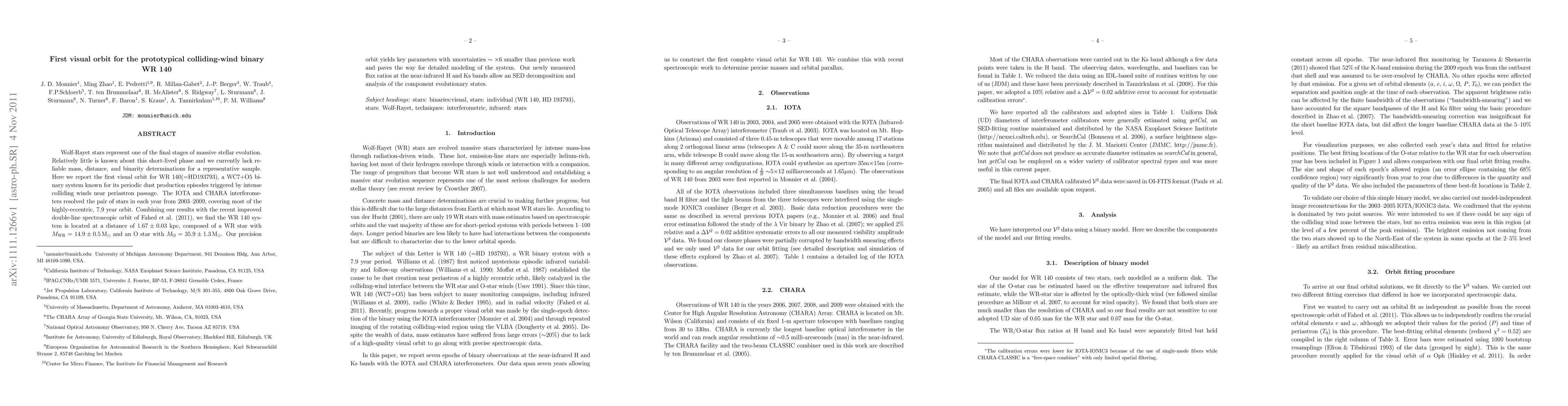 This paper reports the first visual orbit for the colliding-wind binary WR 140, resolved by IOTA and CHARA interferometers from 2003-2009. The study provides precise parameters for the system, including the masses of the Wolf-Rayet and O stars, and refines the distance to 1.67 kpc, facilitating detailed modeling and evolutionary analysis.
