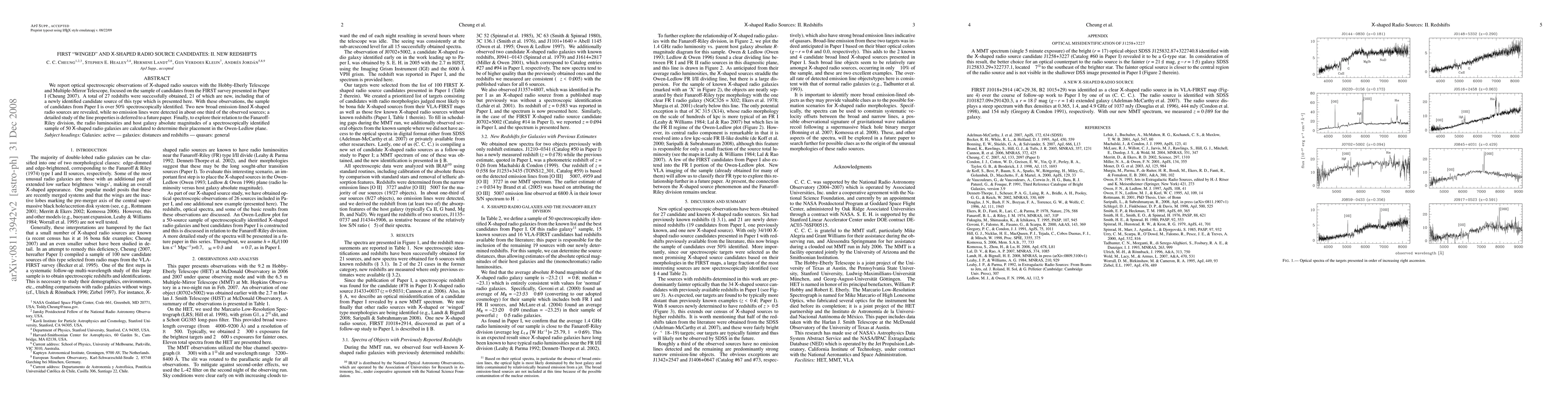 We report optical spectroscopic observations of X-shaped radio sources with the Hobby-Eberly Telescope and Multiple-Mirror Telescope, focused on the sample of candidates from the FIRST survey presented in Paper I (Cheung 2007). A total of 27 redshifts were successfully obtained, 21 of which are new, including that of a newly identified candidate source of this type which is presented here. With these observations, the sample of candidates from Paper I is over 50% spectroscopically identified. Two new broad emission-lined X-shaped radio sources are revealed, while no emission lines were detected in about one third of the observed sources; a detailed study of the line properties is deferred to a future paper. Finally, to explore their relation to the Fanaroff-Riley division, the radio luminosities and host galaxy absolute magnitudes of a spectroscopically identified sample of 50 X-shaped radio galaxies are calculated to determine their placement in the Owen-Ledlow plane.