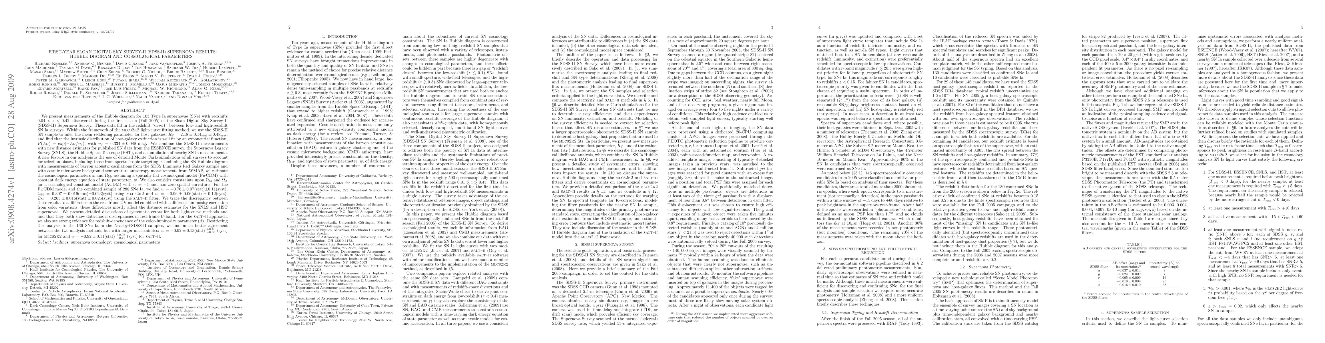 This paper presents Hubble diagram measurements for 103 Type Ia supernovae from the SDSS-II survey, combining them with other SN Ia data to estimate cosmological parameters. The results suggest a dark energy equation of state parameter w = -0.76 and matter density Ω_M = 0.306, with discrepancies between analysis methods attributed to systematic errors and redshift-dependence of color-luminosity parameters.
