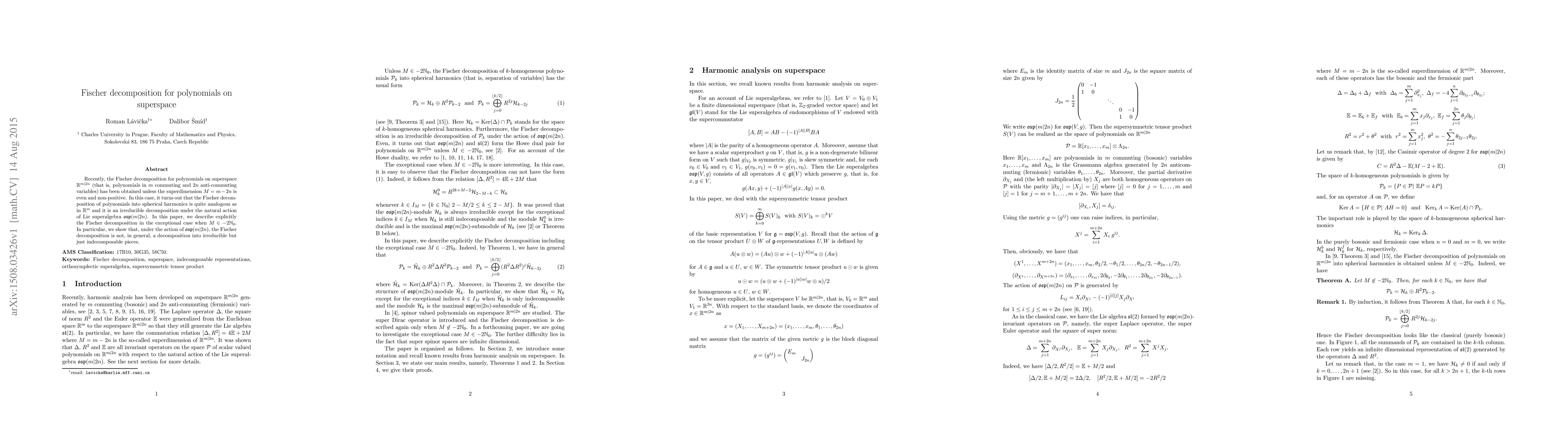 Researchers describe Fischer decomposition for polynomials on superspace when M is even and non-positive, showing a unique decomposition that differs from R^m cases.