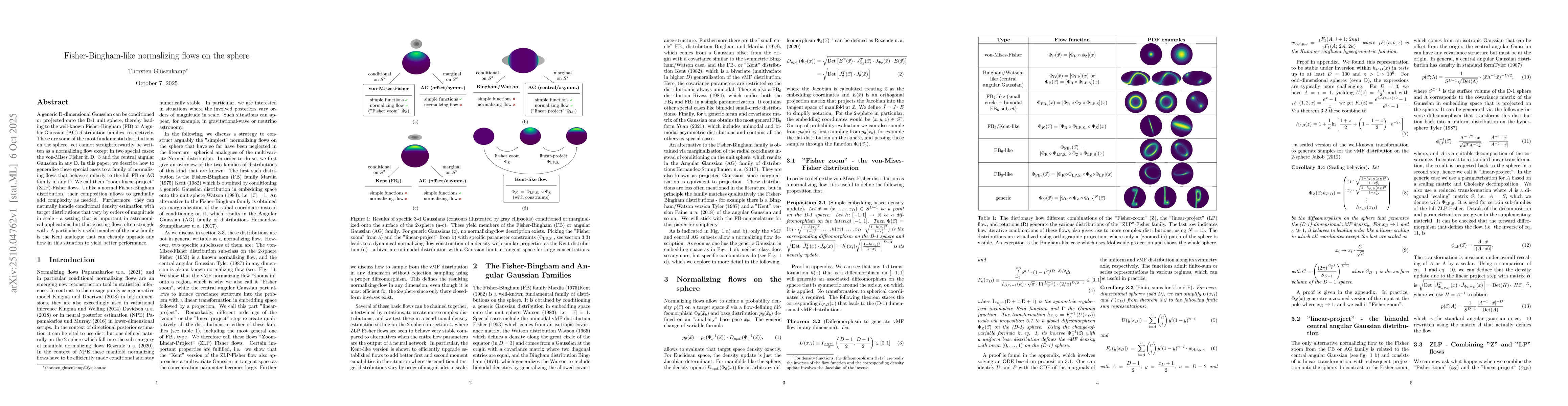 A generic D-dimensional Gaussian can be conditioned or projected onto the D-1 unit sphere, thereby leading to the well-known Fisher-Bingham (FB) or Angular Gaussian (AG) distribution families, respectively. These are some of the most fundamental distributions on the sphere, yet cannot straightforwardly be written as a normalizing flow except in two special cases: the von-Mises Fisher in D=3 and the central angular Gaussian in any D. In this paper, we describe how to generalize these special cases to a family of normalizing flows that behave similarly to the full FB or AG family in any D. We call them "zoom-linear-project" (ZLP)-Fisher flows. Unlike a normal Fisher-Bingham distribution, their composition allows to gradually add complexity as needed. Furthermore, they can naturally handle conditional density estimation with target distributions that vary by orders of magnitude in scale - a setting that is important in astronomical applications but that existing flows often struggle with. A particularly useful member of the new family is the Kent analogue that can cheaply upgrade any flow in this situation to yield better performance.