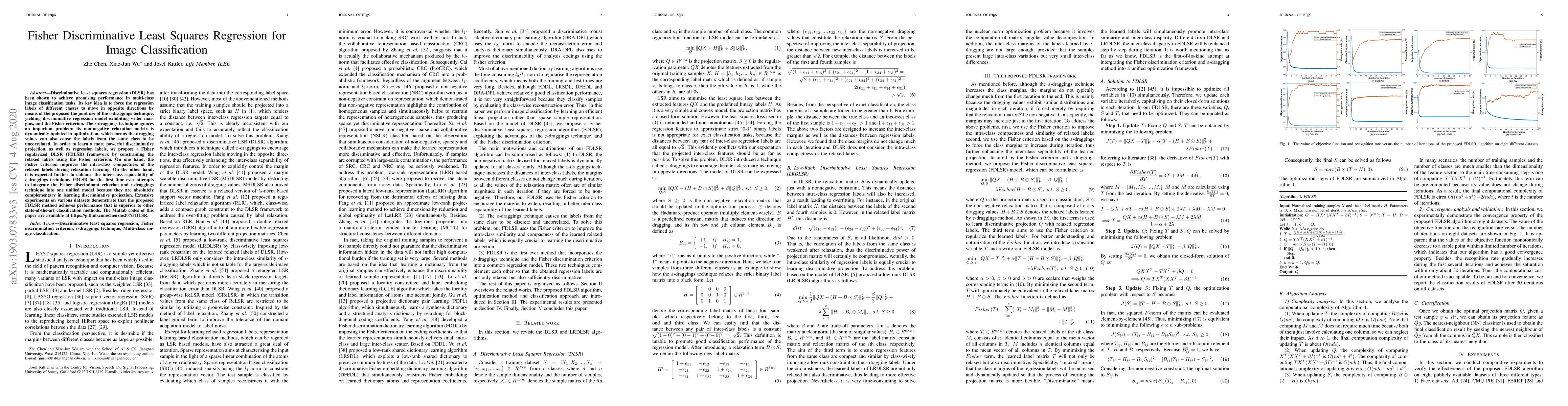 The paper proposes a Fisher regularized discriminative least squares regression (FDLSR) framework to improve multi-class image classification by combining the $\epsilon$-draggings technique with the Fisher criterion to enhance intra-class compactness and inter-class separability. Experimental results show that FDLSR outperforms other state-of-the-art methods.
