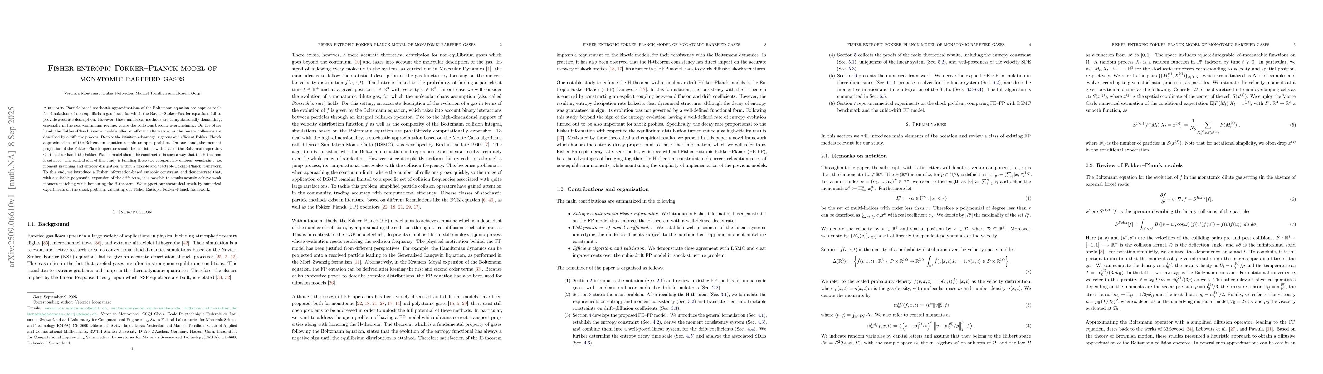 Particle-based stochastic approximations of the Boltzmann equation are popular tools for simulations of non-equilibrium gas flows, for which the Navier-Stokes-Fourier equations fail to provide accurate description. However, these numerical methods are computationally demanding, especially in the near-continuum regime, where the collisions become overwhelming. On the other hand, the Fokker-Planck kinetic models offer an efficient alternative, as the binary collisions are described by a diffusive process. Despite the intuitive advantage, rigorous and efficient Fokker-Planck approximations of the Boltzmann equation remain an open problem. On one hand, the moment projection of the Fokker-Planck operator should be consistent with that of the Boltzmann operator. On the other hand, the Fokker-Planck model should be constructed in such a way that the H-theorem is satisfied. The central aim of this study is fulfilling these two categorically different constraints, i.e. moment matching and entropy dissipation, within a flexible and tractable Fokker-Planck framework. To this end, we introduce a Fisher information-based entropic constraint and demonstrate that, with a suitable polynomial expansion of the drift term, it is possible to simultaneously achieve weak moment matching while honouring the H-theorem. We support our theoretical result by numerical experiments on the shock problem, validating our Fisher Entropic Fokker-Planck framework.