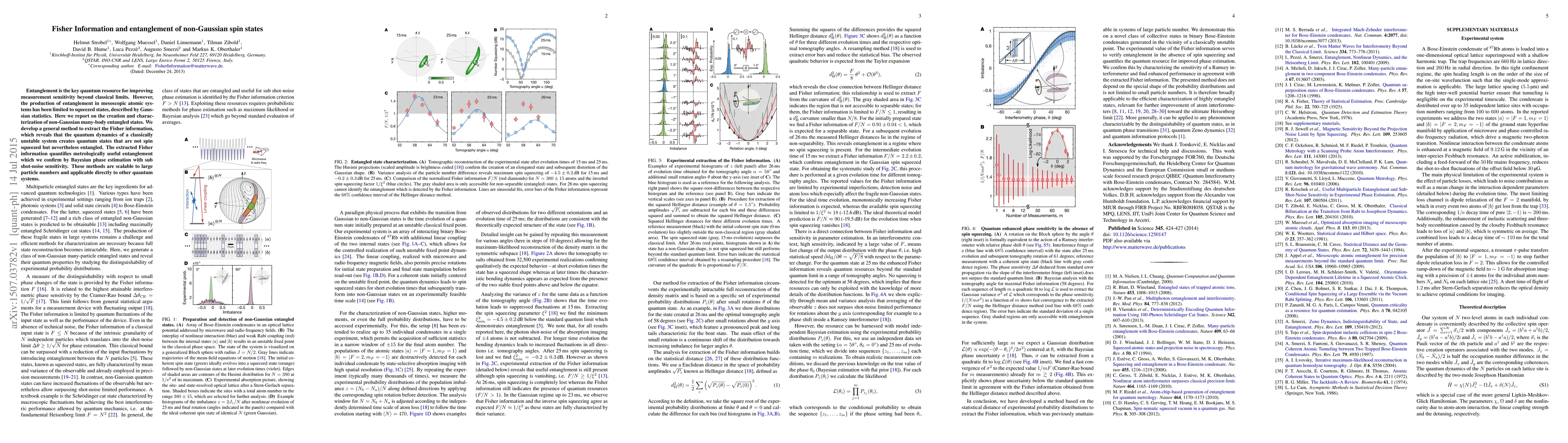 Entanglement is the key quantum resource for improving measurement sensitivity beyond classical limits. However, the production of entanglement in mesoscopic atomic systems has been limited to squeezed states, described by Gaussian statistics. Here we report on the creation and characterization of non-Gaussian many-body entangled states. We develop a general method to extract the Fisher information, which reveals that the quantum dynamics of a classically unstable system creates quantum states that are not spin squeezed but nevertheless entangled. The extracted Fisher information quantifies metrologically useful entanglement which we confirm by Bayesian phase estimation with sub shot-noise sensitivity. These methods are scalable to large particle numbers and applicable directly to other quantum systems.