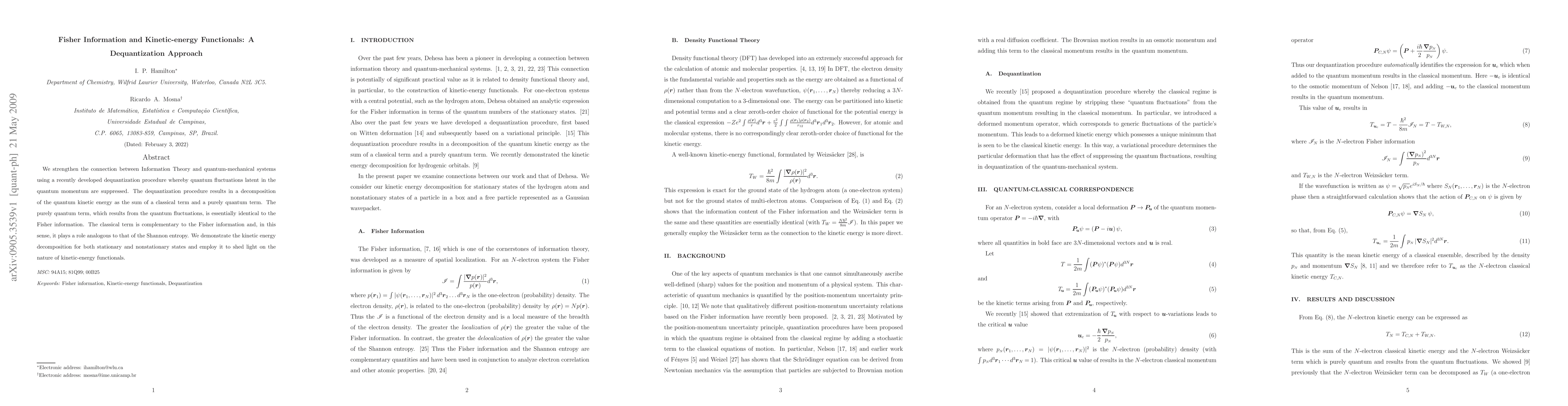 We strengthen the connection between Information Theory and quantum-mechanical systems using a recently developed dequantization procedure whereby quantum fluctuations latent in the quantum momentum are suppressed. The dequantization procedure results in a decomposition of the quantum kinetic energy as the sum of a classical term and a purely quantum term. The purely quantum term, which results from the quantum fluctuations, is essentially identical to the Fisher information. The classical term is complementary to the Fisher information and, in this sense, it plays a role analogous to that of the Shannon entropy. We demonstrate the kinetic energy decomposition for both stationary and nonstationary states and employ it to shed light on the nature of kinetic-energy functionals.