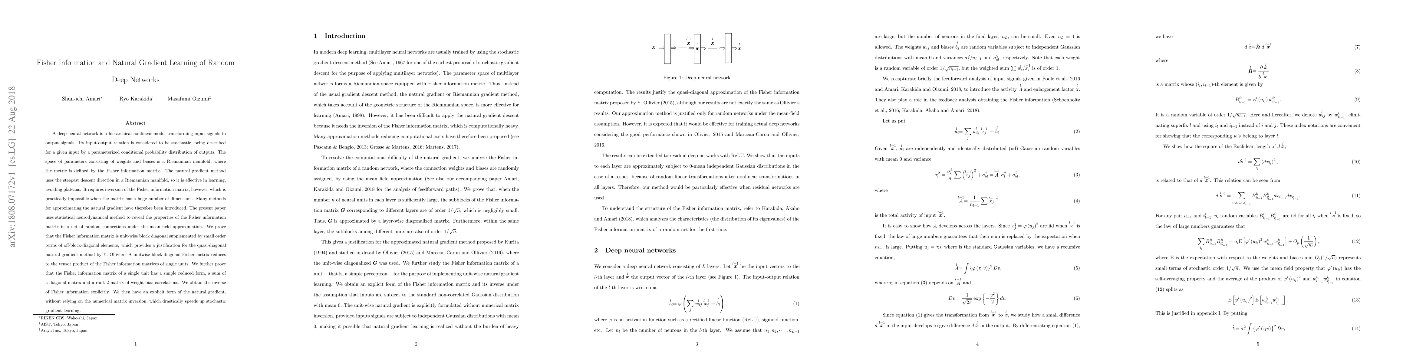 This paper explores the Fisher information matrix in random deep neural networks and demonstrates that it is unit-wise block diagonal, simplifying the computation of the natural gradient. The authors provide an explicit form for the natural gradient, significantly accelerating learning without the need for matrix inversion.