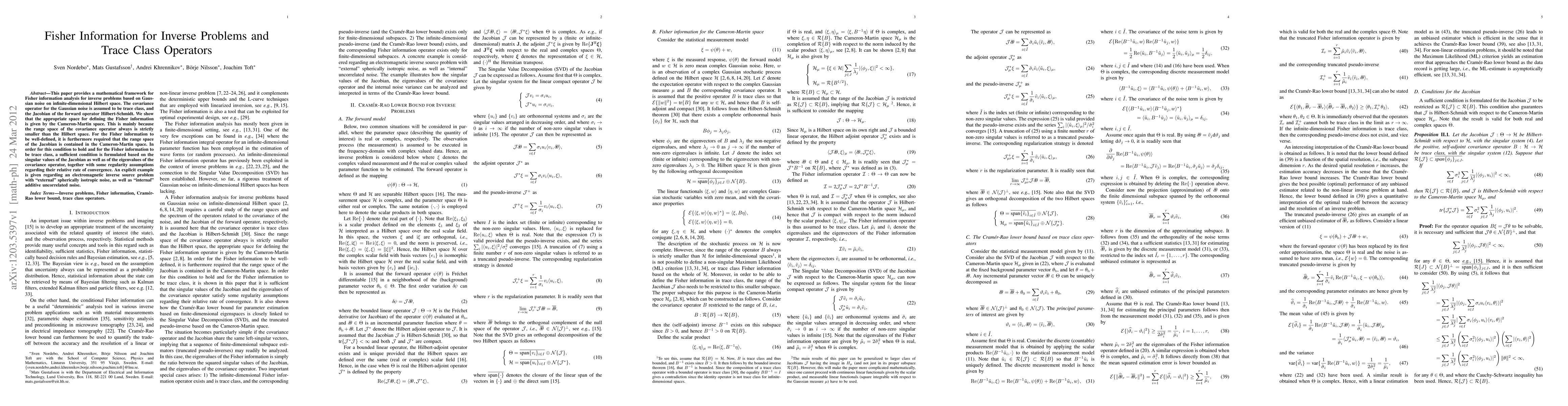 This paper develops a mathematical framework for analyzing Fisher information in inverse problems with Gaussian noise on infinite-dimensional Hilbert space. A sufficient condition is formulated based on the singular values of the Jacobian and covariance operator to ensure the Fisher information is well-defined and trace class.