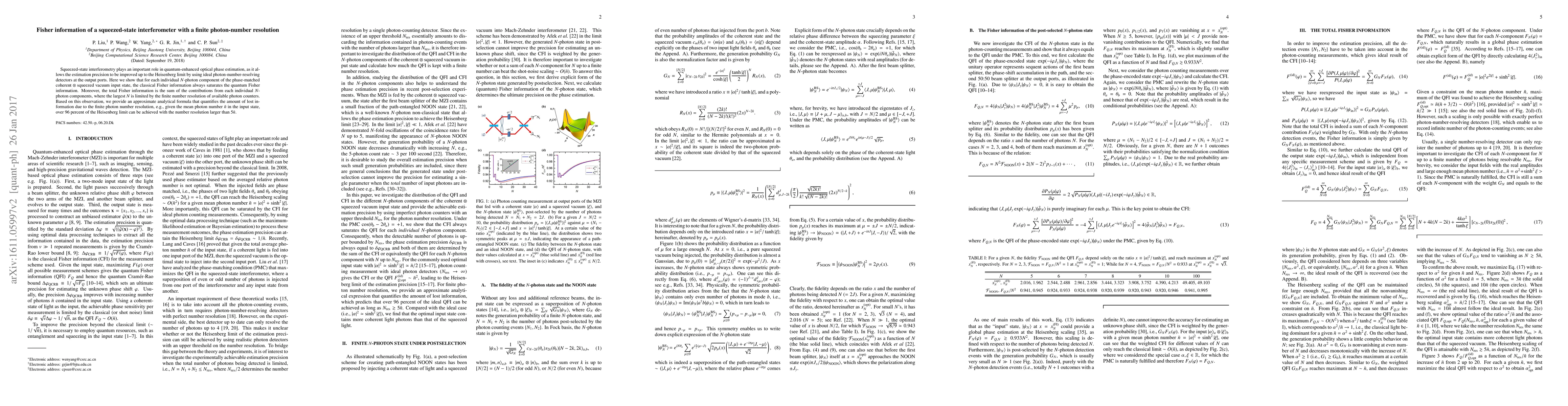 This paper investigates the Fisher information in squeezed-state interferometers with limited photon-number resolution, demonstrating that classical Fisher information for individual photon components matches the quantum limit. It provides an analytical formula to estimate information loss due to finite resolution, showing that over 96% of the Heisenberg limit can be achieved with a resolution greater than 5 times the mean photon number.