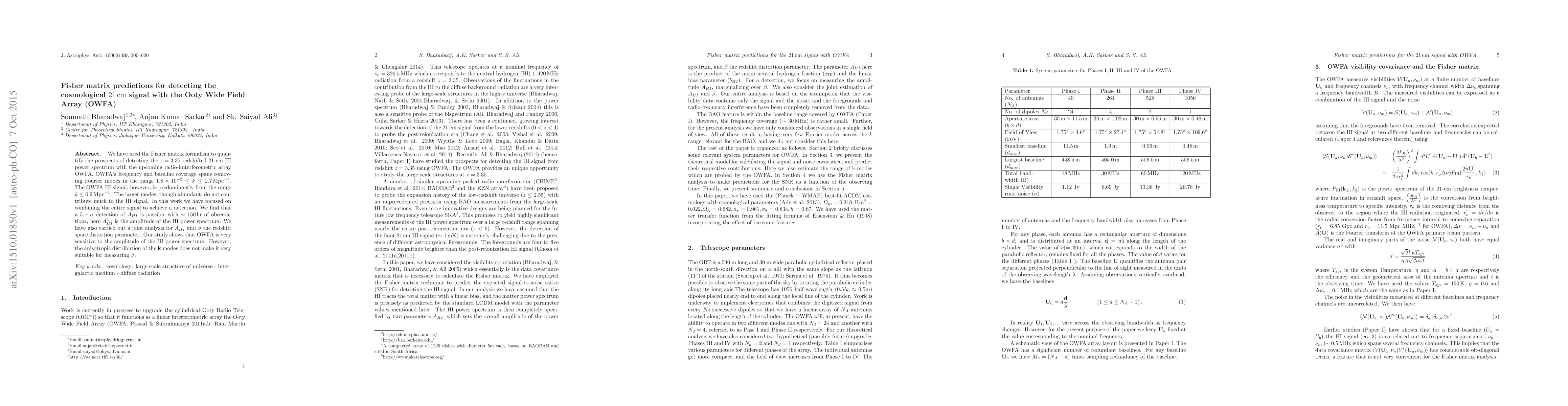 We have used the Fisher matrix formalism to quantify the prospects of detecting the z = 3.35 redshifted 21-cm HI power spectrum with the upcoming radio-imterferometric array OWFA. OWFA's frequency and baseline coverage spans comoving Fourier modes (k) in the range 0.018 to 2.7 [1/Mpc]. The OWFA HI signal, however, is predominantly from the range k below 0.2 [1/Mpc]. The larger modes, though abundant, do not contribute much to the HI signal. In this work we have focused on combining the entire signal to achieve a detection. We find that a 5-sigma detection of A_{HI} is possible with ~ 150 hr of observations, here A^2 _{HI} is the amplitude of the HI power spectrum. We have also carried out a joint analysis for A_{HI} and the redshift space distortion parameter. Our study shows that OWFA is very sensitive to the amplitude of the HI power spectrum. However, the anisotropic distribution of the k modes does not make it very suitable for measuring the redshift space distortion parameter.