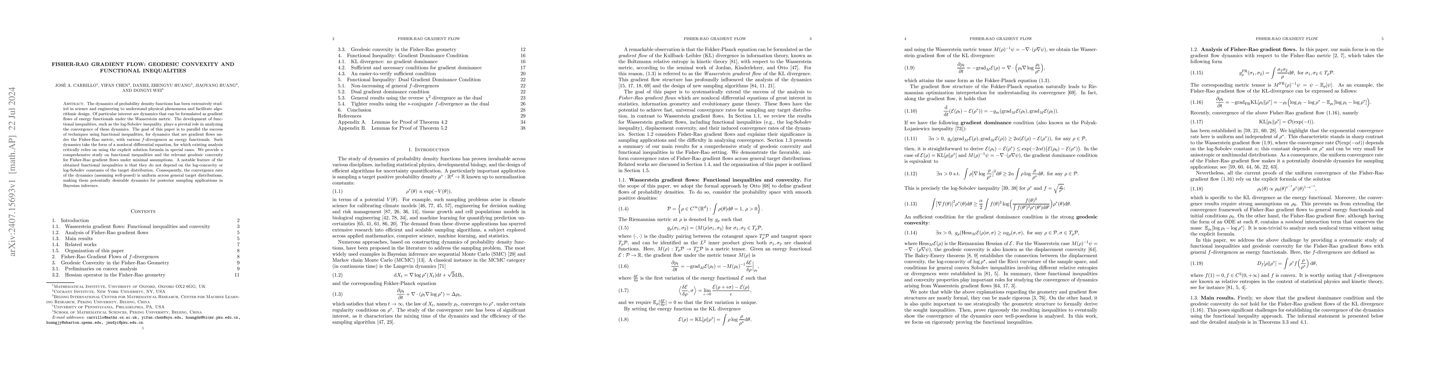 This paper studies the dynamics of probability density functions formulated as gradient flows under the Fisher-Rao metric, deriving functional inequalities and geodesic convexity without reliance on log-concavity assumptions. The obtained functional inequalities ensure uniform convergence rates across general target distributions, which could enhance posterior sampling in Bayesian inference.