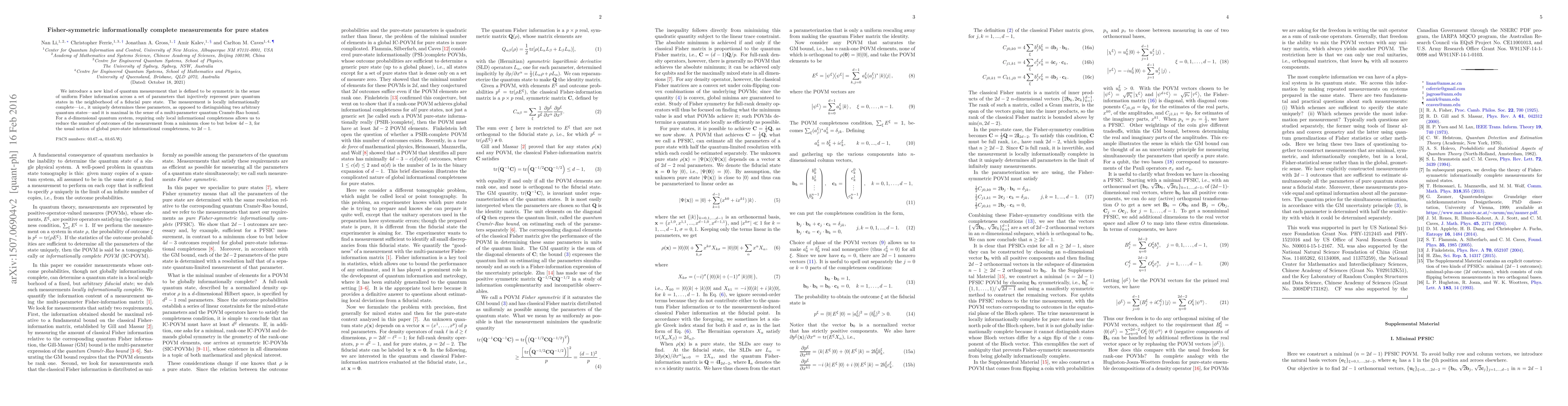 This paper proposes a new type of quantum measurement that is symmetric in terms of Fisher information across parameters representing pure quantum states near a fiducial state. This locally informationally complete measurement reduces the number of outcomes needed from nearly $4d-3$ to $2d-1$ for $d$-dimensional quantum systems.