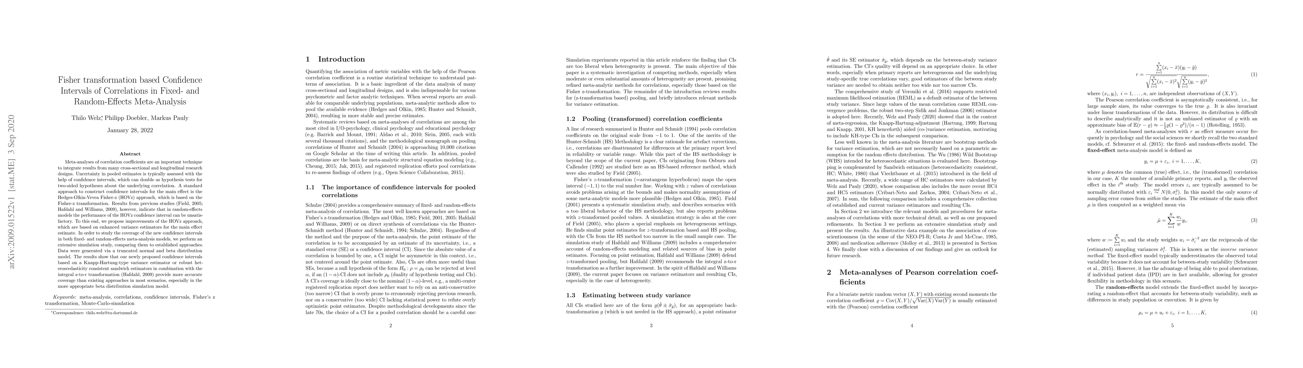 This paper proposes improved confidence intervals for pooled correlation coefficients in meta-analysis, based on enhanced variance estimators and the Fisher transformation. Simulation studies show that these new intervals, especially when combined with robust estimators, provide more accurate coverage compared to existing methods.