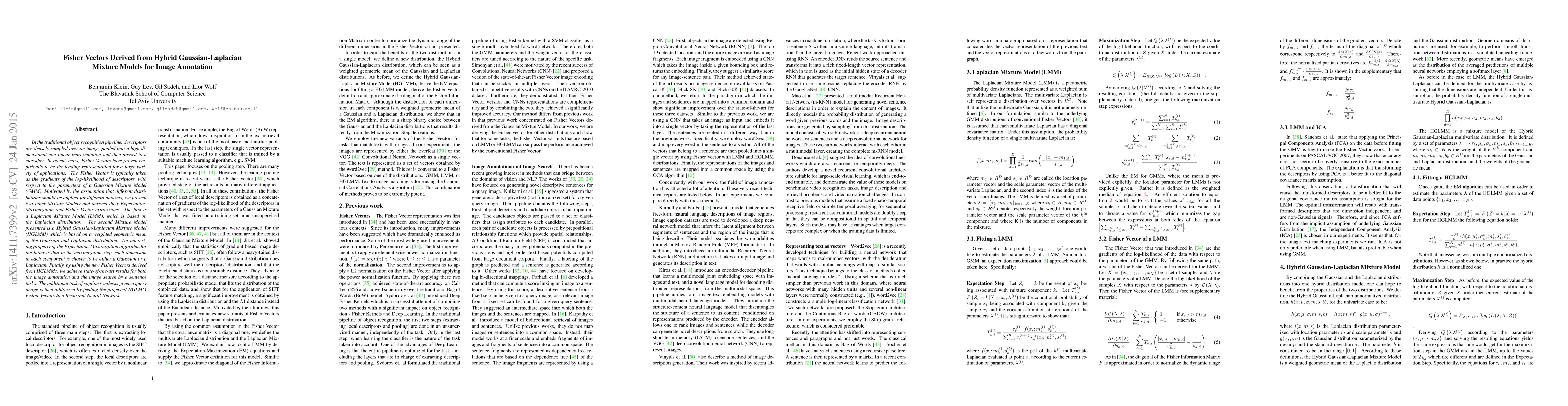 In the traditional object recognition pipeline, descriptors are densely sampled over an image, pooled into a high dimensional non-linear representation and then passed to a classifier. In recent years, Fisher Vectors have proven empirically to be the leading representation for a large variety of applications. The Fisher Vector is typically taken as the gradients of the log-likelihood of descriptors, with respect to the parameters of a Gaussian Mixture Model (GMM). Motivated by the assumption that different distributions should be applied for different datasets, we present two other Mixture Models and derive their Expectation-Maximization and Fisher Vector expressions. The first is a Laplacian Mixture Model (LMM), which is based on the Laplacian distribution. The second Mixture Model presented is a Hybrid Gaussian-Laplacian Mixture Model (HGLMM) which is based on a weighted geometric mean of the Gaussian and Laplacian distribution. An interesting property of the Expectation-Maximization algorithm for the latter is that in the maximization step, each dimension in each component is chosen to be either a Gaussian or a Laplacian. Finally, by using the new Fisher Vectors derived from HGLMMs, we achieve state-of-the-art results for both the image annotation and the image search by a sentence tasks.