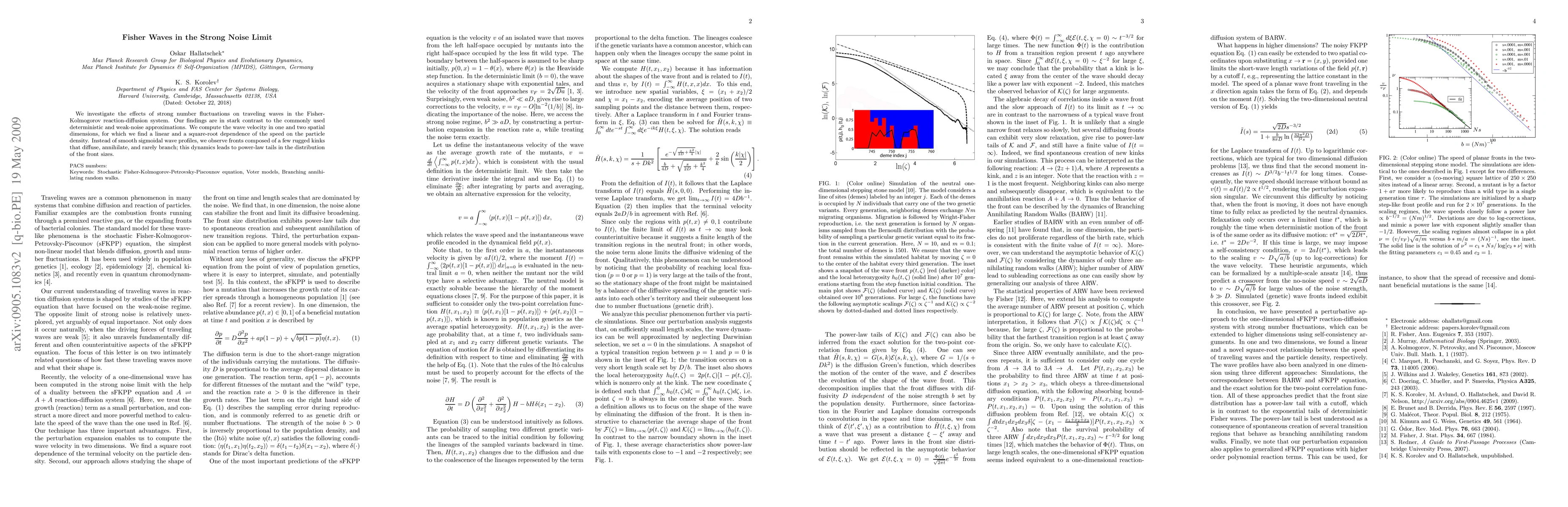We investigate the effects of strong number fluctuations on traveling waves in the Fisher-Kolmogorov reaction-diffusion system. Our findings are in stark contrast to the commonly used deterministic and weak-noise approximations. We compute the wave velocity in one and two spatial dimensions, for which we find a linear and a square-root dependence of the speed on the particle density. Instead of smooth sigmoidal wave profiles, we observe fronts composed of a few rugged kinks that diffuse, annihilate, and rarely branch; this dynamics leads to power-law tails in the distribution of the front sizes.