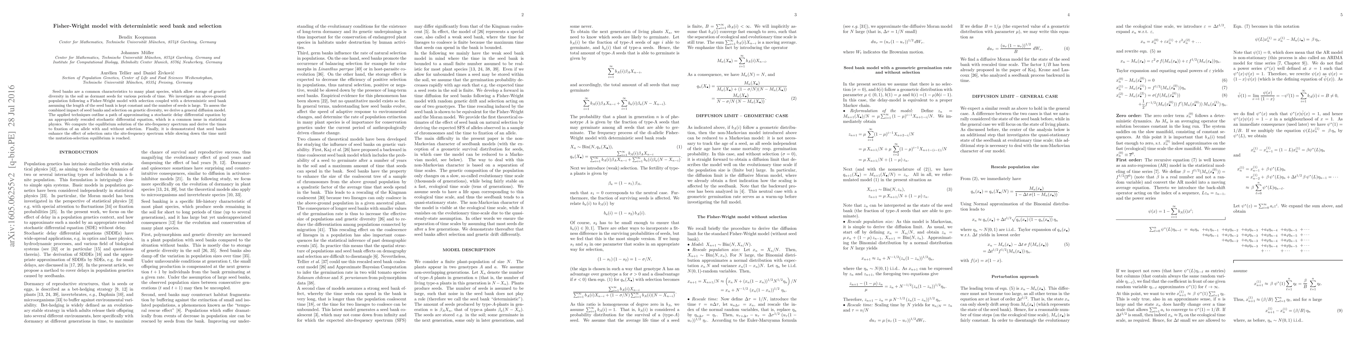 This paper explores the Fisher-Wright model with deterministic seed banks and selection, deriving a diffusion model to assess genetic diversity. It finds that seed banks enhance selection effects on the site-frequency spectrum while delaying mutation-selection equilibrium.