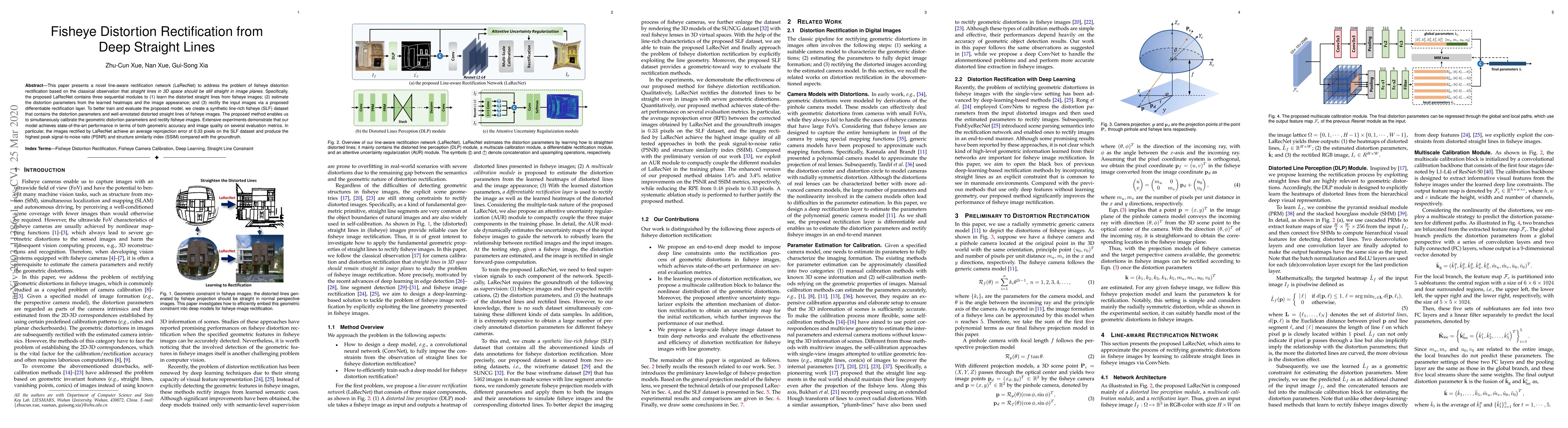 This paper introduces LaRecNet, a novel line-aware network for fisheye distortion rectification, achieving state-of-the-art performance by learning distorted lines, estimating distortion parameters, and rectifying images. The method is validated using a synthetic dataset with line-rich fisheye images, showing superior geometric accuracy and image quality.