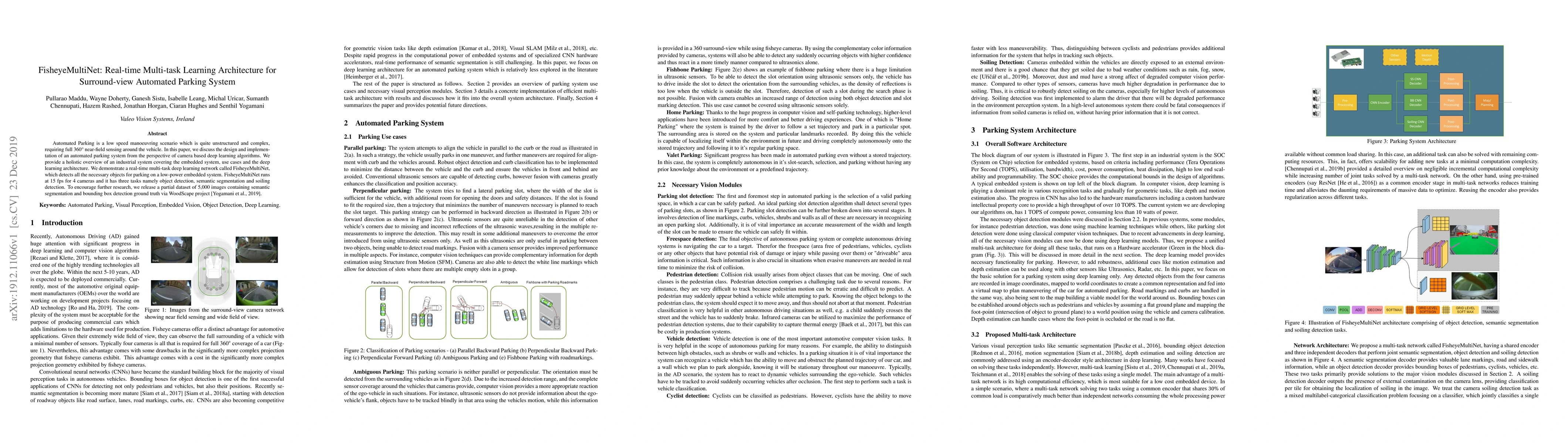 Researchers developed FisheyeMultiNet, a real-time camera-based system that can detect objects, segment semantic data, and identify soiling in automated parking using four cameras at 15 frames per second. The system aims to improve the efficiency of low-speed manoeuvring scenarios requiring full 360-degree sensing around vehicles.
