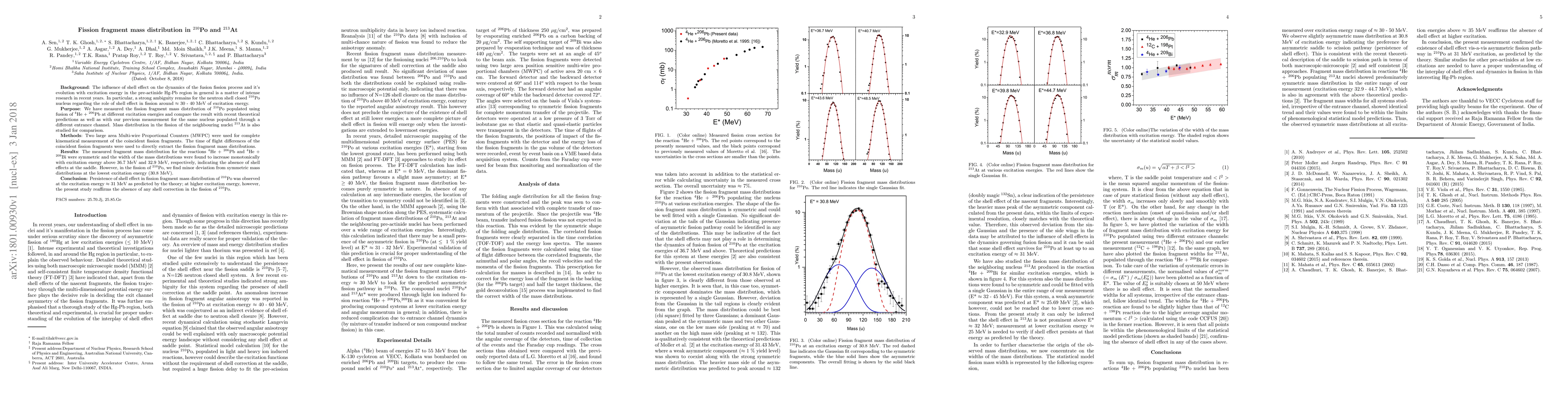 This study investigates the fission fragment mass distribution in $^{210}$Po and $^{213}$At, revealing minor deviations from symmetric distributions in $^{210}$Po at low excitation energies, indicating a persistent shell effect, while higher energies show no such effect. The findings align with theoretical predictions and suggest the influence of shell effects diminishes with increasing excitation energy.