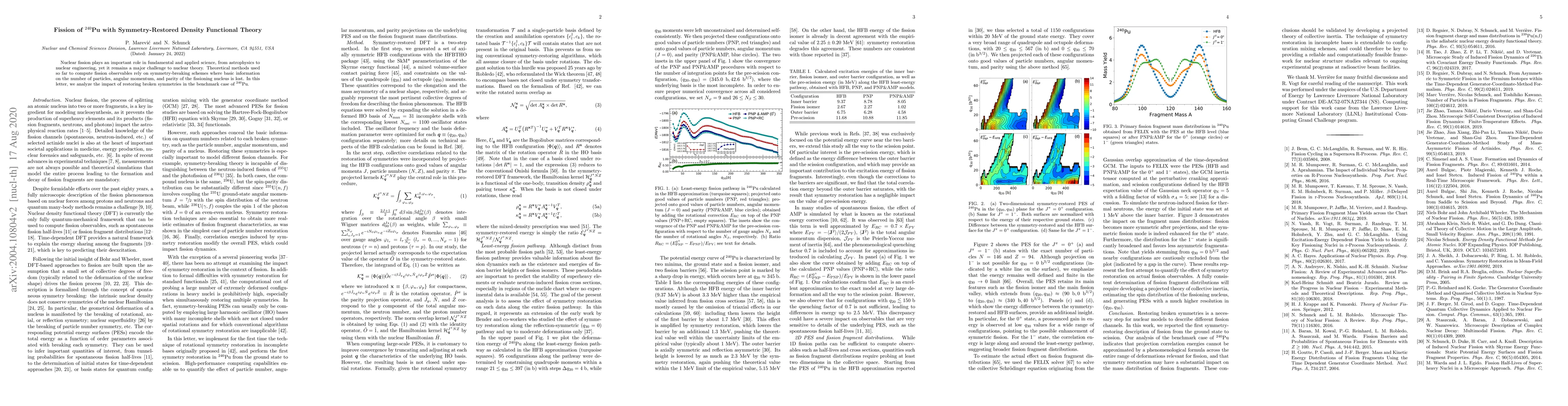 Nuclear fission plays an important role in fundamental and applied science, from astrophysics to nuclear engineering, yet it remains a major challenge to nuclear theory. Theoretical methods used so far to compute fission observables rely on symmetry-breaking schemes where basic information on the number of particles, angular momentum, and parity of the fissioning nucleus is lost. In this work, we analyze the impact of restoring broken symmetries in the benchmark case of $^{240}$Pu.