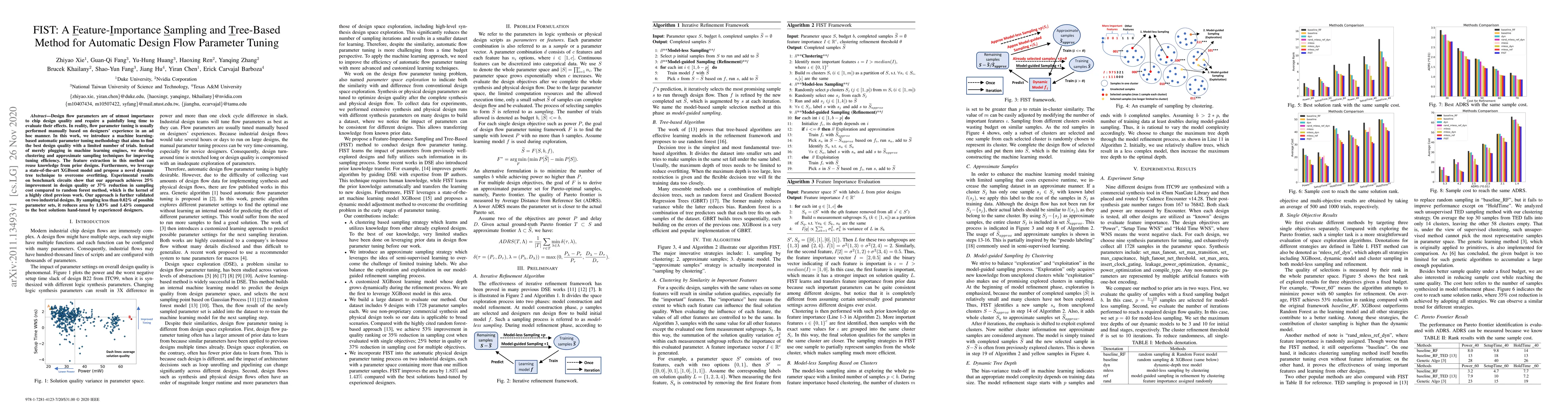 Design flow parameters are of utmost importance to chip design quality and require a painfully long time to evaluate their effects. In reality, flow parameter tuning is usually performed manually based on designers' experience in an ad hoc manner. In this work, we introduce a machine learning-based automatic parameter tuning methodology that aims to find the best design quality with a limited number of trials. Instead of merely plugging in machine learning engines, we develop clustering and approximate sampling techniques for improving tuning efficiency. The feature extraction in this method can reuse knowledge from prior designs. Furthermore, we leverage a state-of-the-art XGBoost model and propose a novel dynamic tree technique to overcome overfitting. Experimental results on benchmark circuits show that our approach achieves 25% improvement in design quality or 37% reduction in sampling cost compared to random forest method, which is the kernel of a highly cited previous work. Our approach is further validated on two industrial designs. By sampling less than 0.02% of possible parameter sets, it reduces area by 1.83% and 1.43% compared to the best solutions hand-tuned by experienced designers.