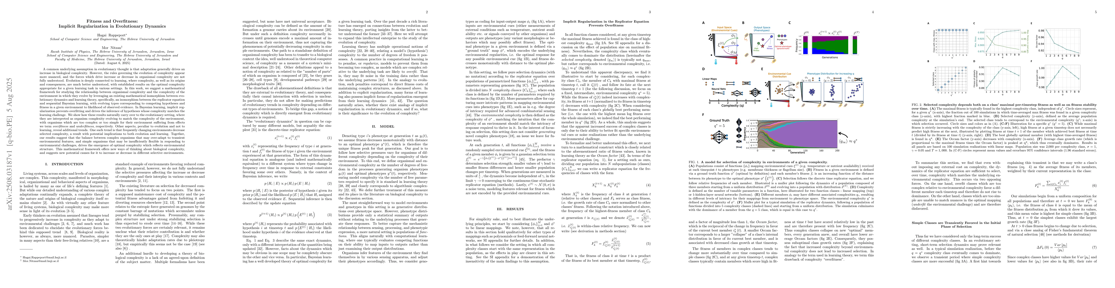 A common assumption in evolutionary thought is that adaptation drives an increase in biological complexity. However, the rules governing evolution of complexity appear more nuanced. Evolution is deeply connected to learning, where complexity is much better understood, with established results on optimal complexity appropriate for a given learning task. In this work, we suggest a mathematical framework for studying the relationship between evolved organismal complexity and enviroenmntal complexity by leveraging a mathematical isomorphism between evolutionary dynamics and learning theory. Namely, between the replicator equation and sequential Bayesian learning, with evolving types corresponding to competing hypotheses and fitness in a given environment to likelihood of observed evidence. In Bayesian learning, implicit regularization prevents overfitting and drives the inference of hypotheses whose complexity matches the learning challenge. We show how these results naturally carry over to the evolutionary setting, where they are interpreted as organism complexity evolving to match the complexity of the environment, with too complex or too simple organisms suffering from \textit{overfitness} and \textit{underfitness}, respectively. Other aspects, peculiar to evolution and not to learning, reveal additional trends. One such trend is that frequently changing environments decrease selected complexity, a result with potential implications to both evolution and learning. Together, our results suggest that the balance between over-adaptation to transient environmental features, and insufficient flexiblity in responding to environmental challenges, drives the emergence of optimal complexity, reflecting environmental structure. This framework offers new ways of thinking about biological complexity, suggesting new potential causes for it to increase or decrease in different environments.