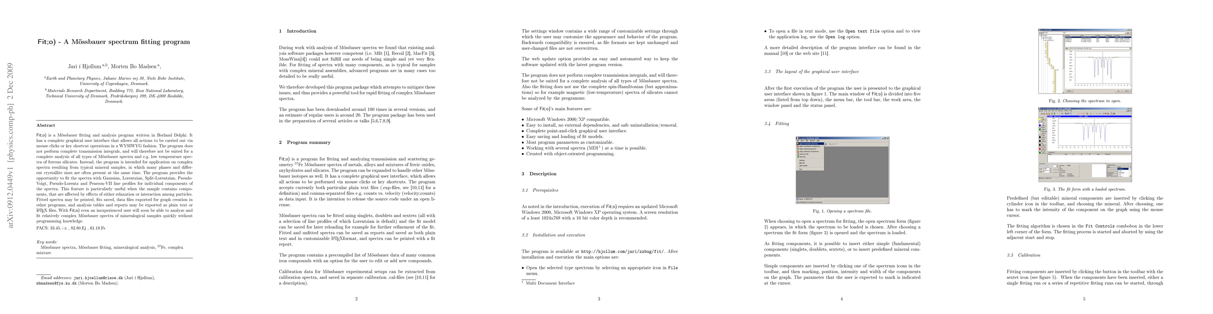 Fit;o) is a M"ossbauer spectrum fitting program that enables users to quickly analyze complex spectra without programming knowledge, offering features such as customizable line profiles and export options for data analysis.