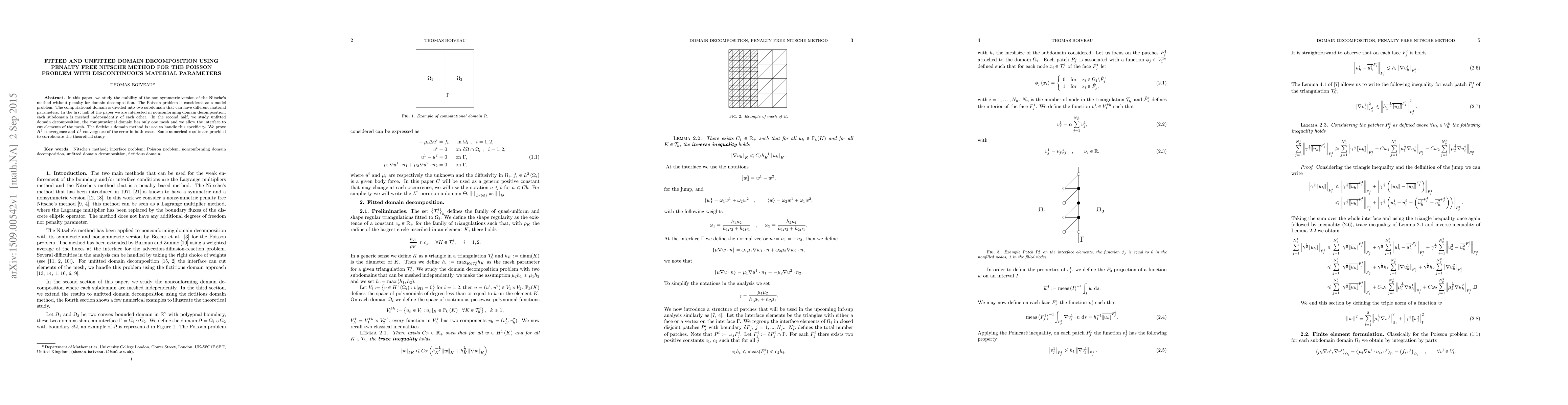 This paper investigates the stability of Nitsche's method without penalty for solving the Poisson problem with discontinuous material parameters in both nonconforming and unfitted domain decomposition methods, proving H^1-convergence and L^2-convergence.