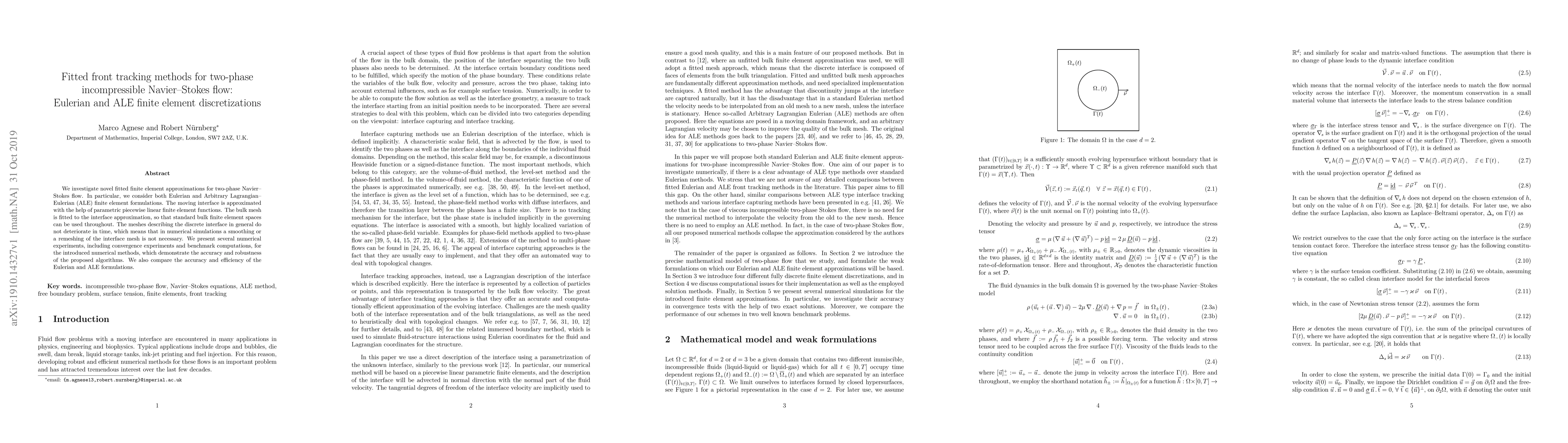 This paper proposes novel fitted finite element methods for two-phase incompressible Navier-Stokes flow, utilizing both Eulerian and ALE formulations. The interface is tracked using parametric finite elements, with fitted bulk meshes that maintain accuracy without mesh deterioration.