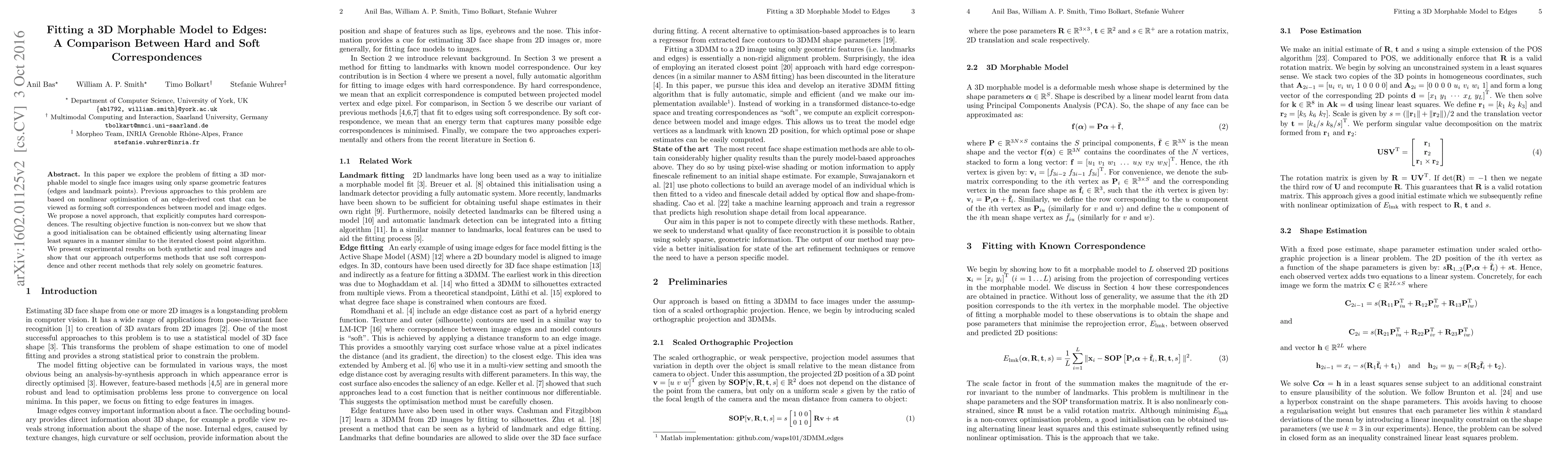 Researchers developed a method for fitting 3D morphable models to single face images in arbitrary pose and lighting using hard correspondences between model vertices and edge pixels. This approach outperforms previous methods that use soft correspondences.