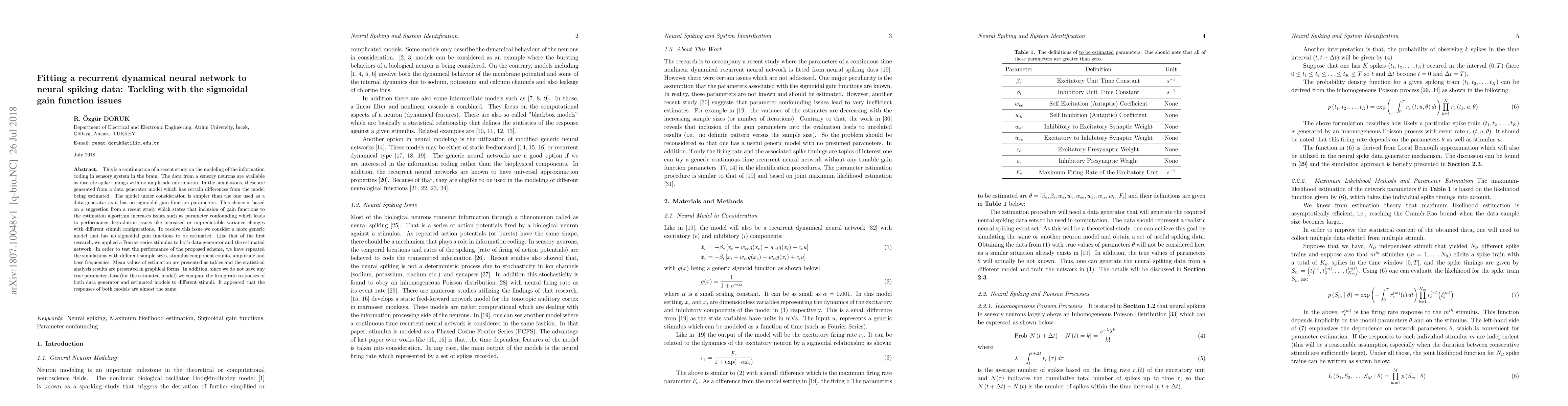 Researchers developed a recurrent neural network to model neural spiking data without sigmoidal gain functions, aiming to avoid parameter confounding issues, and found that the estimated model's firing rate responses were similar to those of the original data generator.