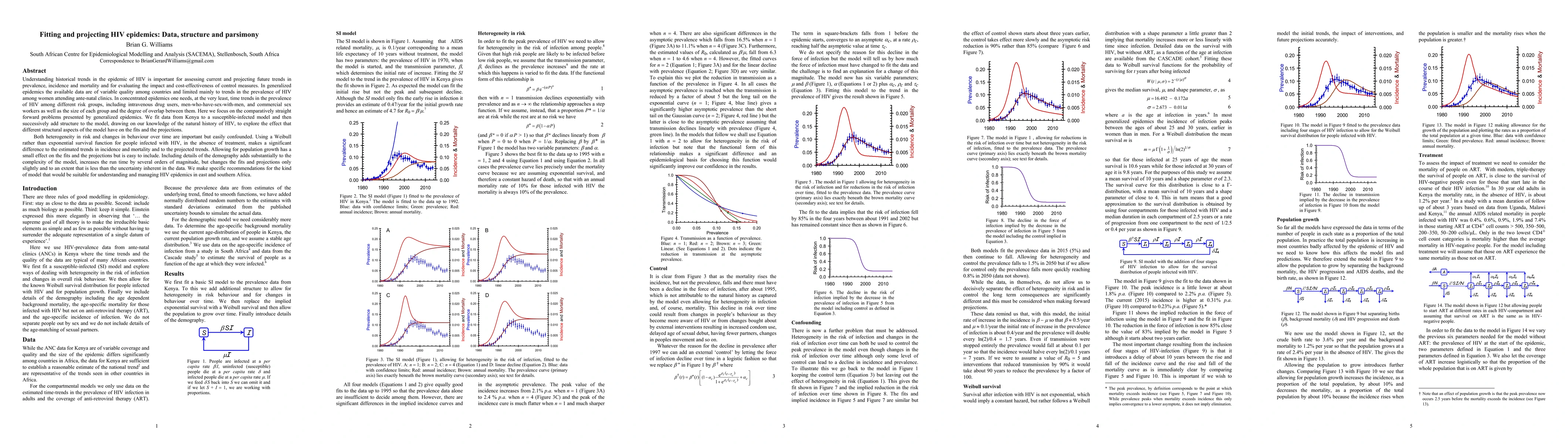 This paper examines fitting and projecting HIV epidemics using data from Kenya, focusing on generalized epidemics. It finds that incorporating a Weibull survival function significantly impacts estimates and projections, while demographic details add complexity with minimal changes to fits and projections.