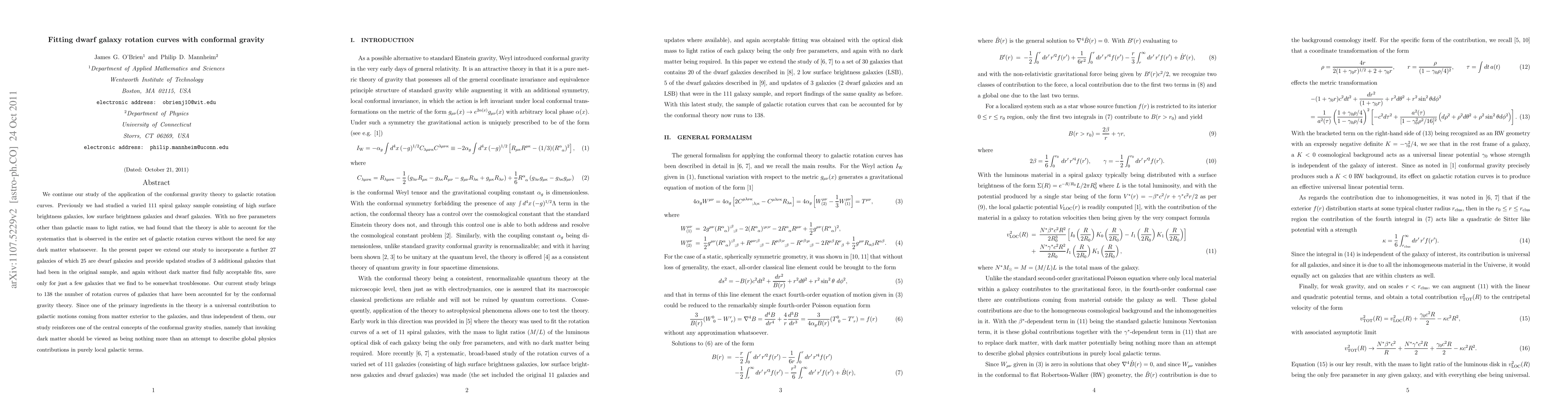 This paper extends the application of conformal gravity theory to rotation curves of 27 additional dwarf galaxies, bringing the total to 138 galaxies fit without invoking dark matter. The study reinforces the theory's central tenet that global physics contributions can explain galactic motions without dark matter.