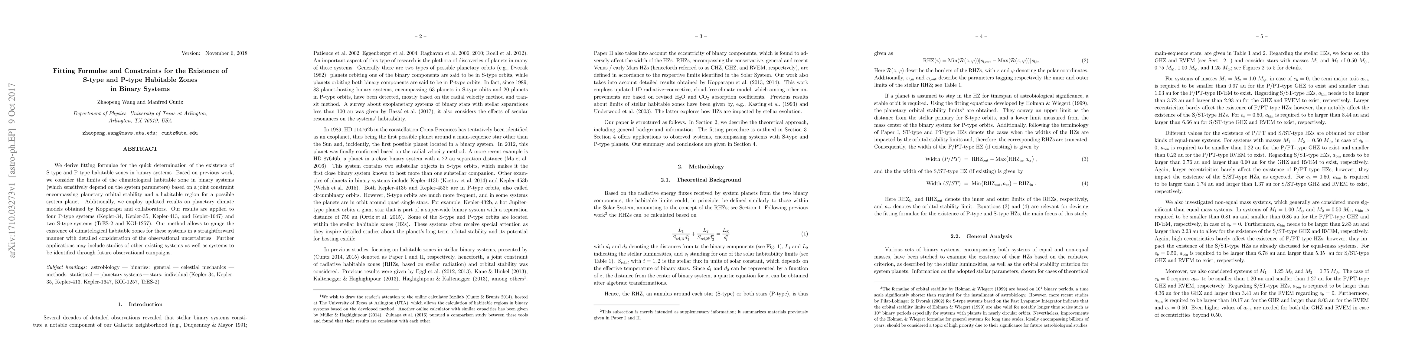 This paper derives fitting formulae for determining the existence of S-type and P-type habitable zones in binary star systems, considering planetary orbital stability and climate models. It applies these methods to several known binary systems, providing a straightforward approach to assess climatological habitability.