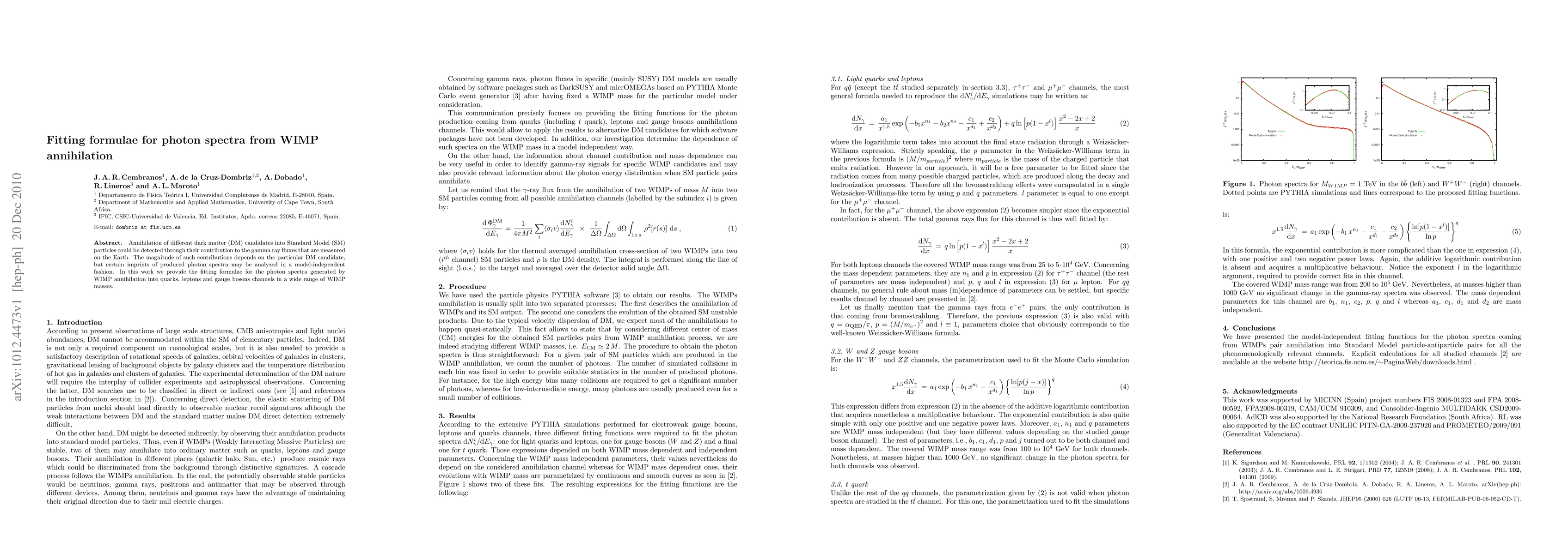 This research offers fitting formulae to predict gamma ray fluxes from dark matter particle (WIMP) annihilation into various Standard Model particles, covering a broad range of WIMP masses. These formulae enable model-independent analysis of photon spectra, aiding in the detection of dark matter through gamma ray measurements.