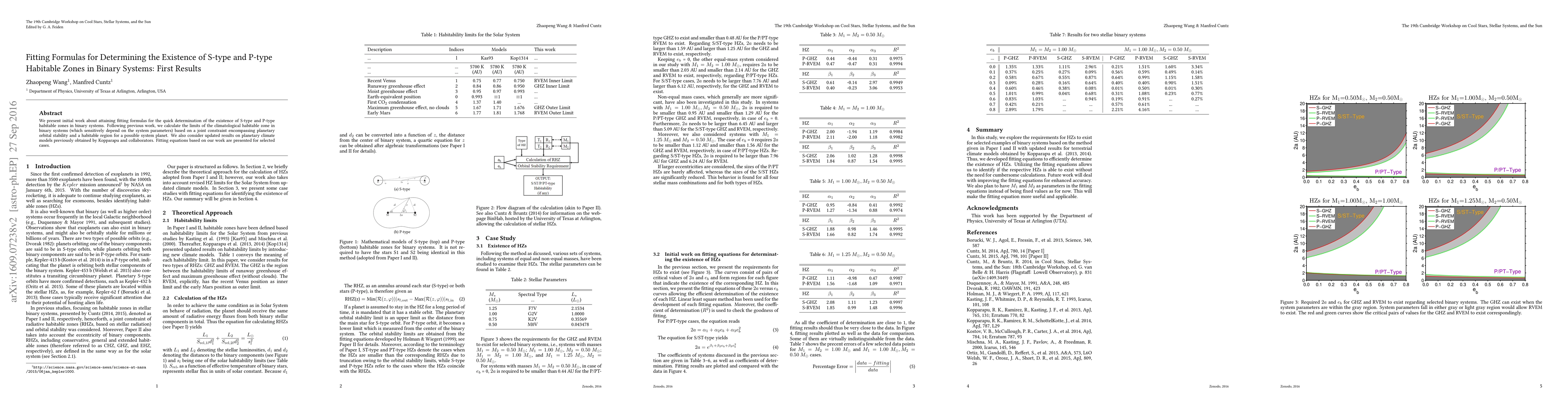 This paper introduces initial fitting formulas for rapidly determining the existence of S-type and P-type habitable zones in binary star systems, considering planetary orbital stability and updated climate models. The study presents equations for selected cases based on system parameters.