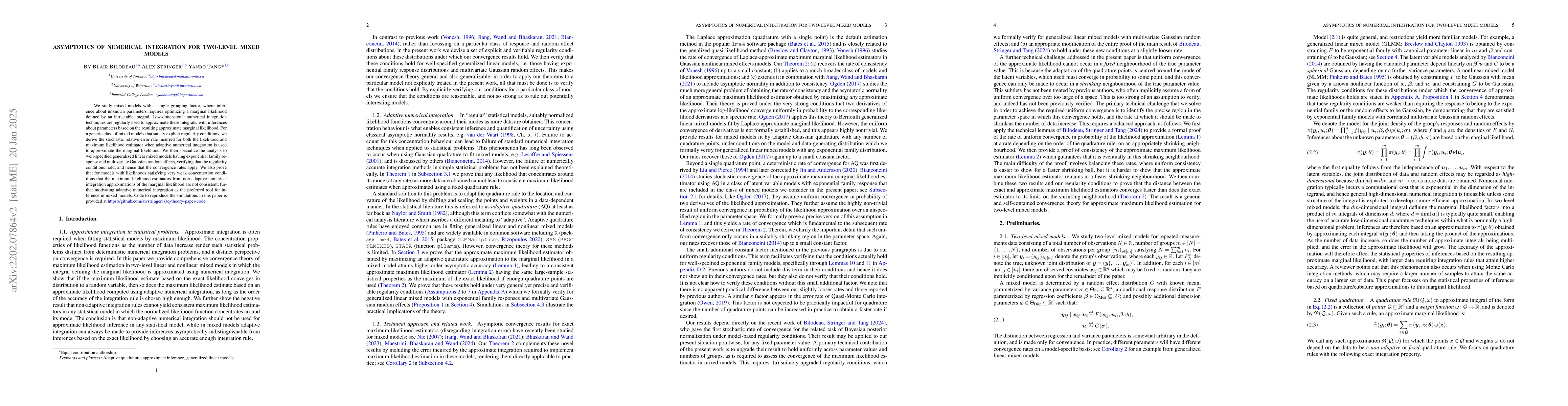 This paper proposes adaptive quadrature for approximating the marginal likelihood in generalized linear mixed models, demonstrating that it reduces error compared to non-adaptive methods. It provides a recommendation for the optimal number of quadrature points, validated through simulations and real data analyses, especially for binary and survival models.