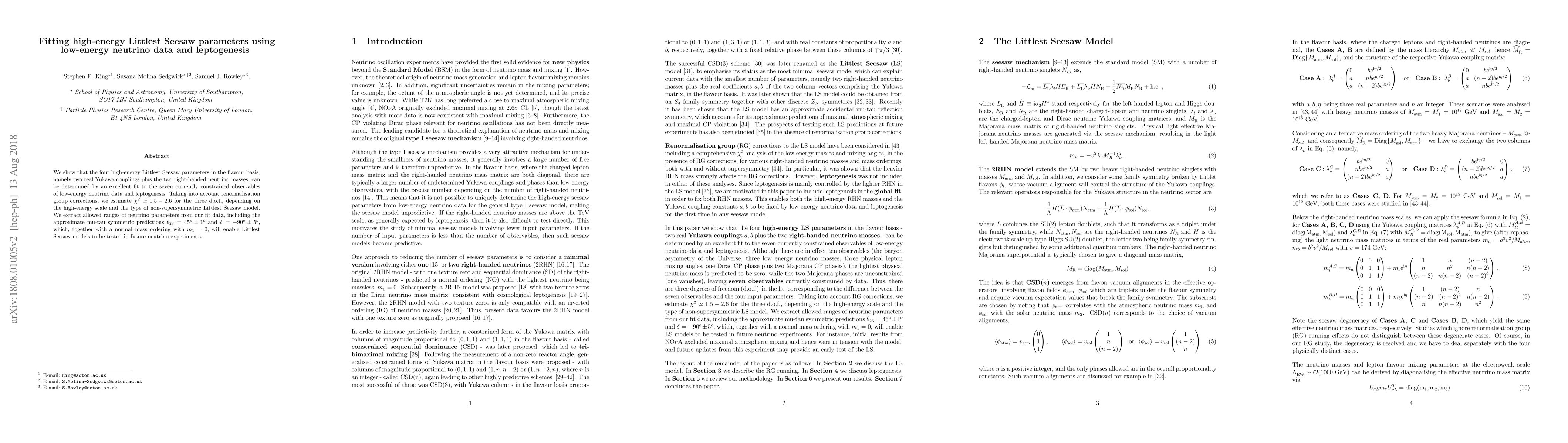 This paper demonstrates that high-energy Littlest Seesaw model parameters can be precisely fitted using low-energy neutrino data and leptogenesis, yielding $\chi^2 \simeq 1.5-2.6$ for three degrees of freedom. The study predicts $\theta_{23}=45^o\pm 1^o$ and $\delta = -90^o \pm 5^o$ under mu-tau symmetry, facilitating future experimental tests of the model.