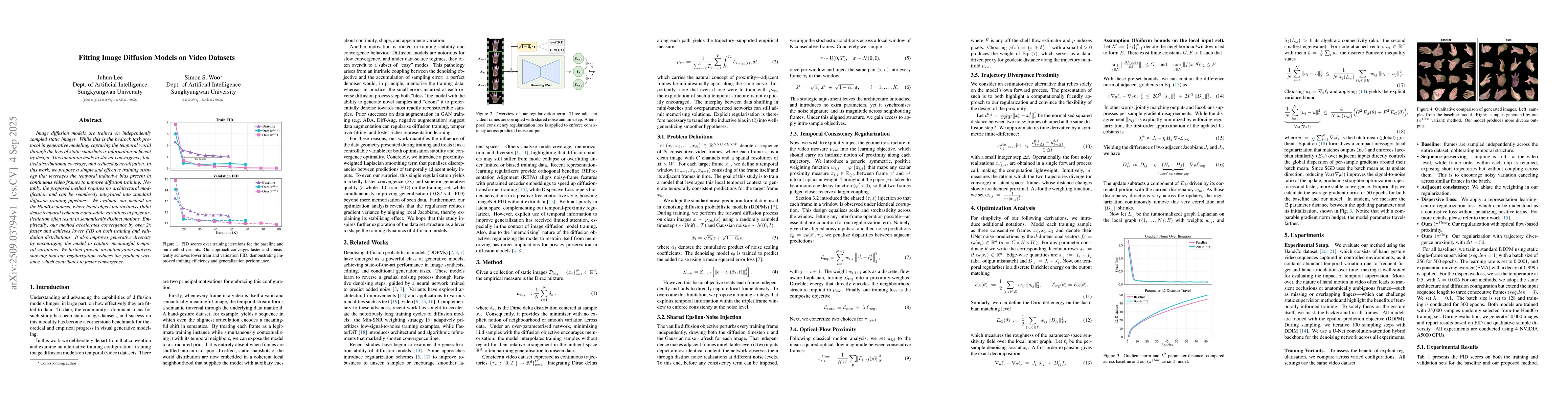 Image diffusion models are trained on independently sampled static images. While this is the bedrock task protocol in generative modeling, capturing the temporal world through the lens of static snapshots is information-deficient by design. This limitation leads to slower convergence, limited distributional coverage, and reduced generalization. In this work, we propose a simple and effective training strategy that leverages the temporal inductive bias present in continuous video frames to improve diffusion training. Notably, the proposed method requires no architectural modification and can be seamlessly integrated into standard diffusion training pipelines. We evaluate our method on the HandCo dataset, where hand-object interactions exhibit dense temporal coherence and subtle variations in finger articulation often result in semantically distinct motions. Empirically, our method accelerates convergence by over 2$\text{x}$ faster and achieves lower FID on both training and validation distributions. It also improves generative diversity by encouraging the model to capture meaningful temporal variations. We further provide an optimization analysis showing that our regularization reduces the gradient variance, which contributes to faster convergence.