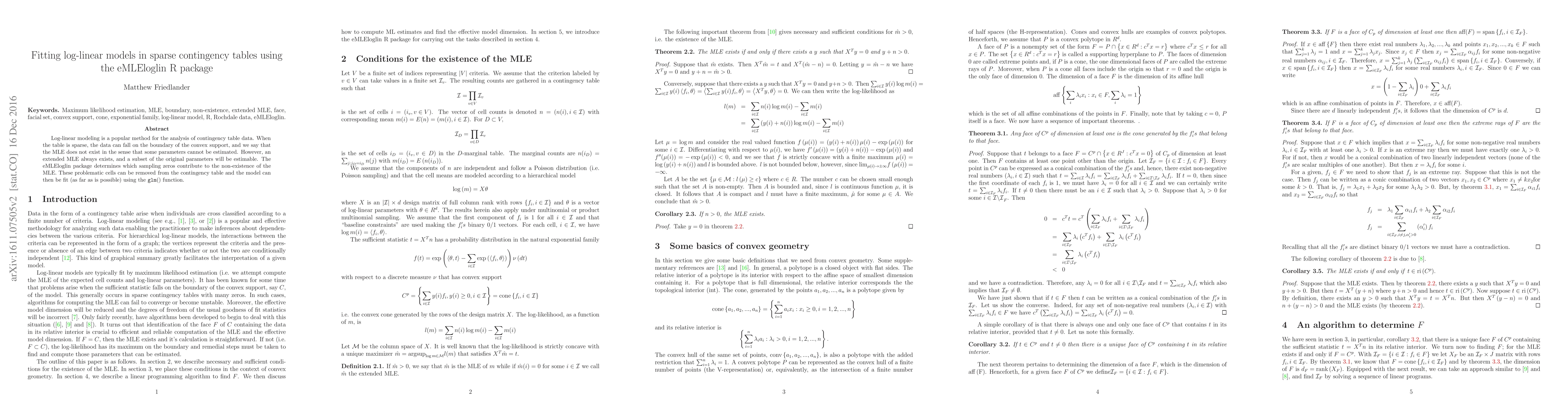 Log-linear modeling is a popular method for the analysis of contingency table data. When the table is sparse, and the data falls on a proper face $F$ of the convex support, there are consequences on model inference and model selection. Knowledge of the cells determining $F$ is crucial to mitigating these effects. We introduce the R package (R Core Team (2016)) eMLEloglin for determining $F$ and passing that information on to the glm package to fit the model properly.