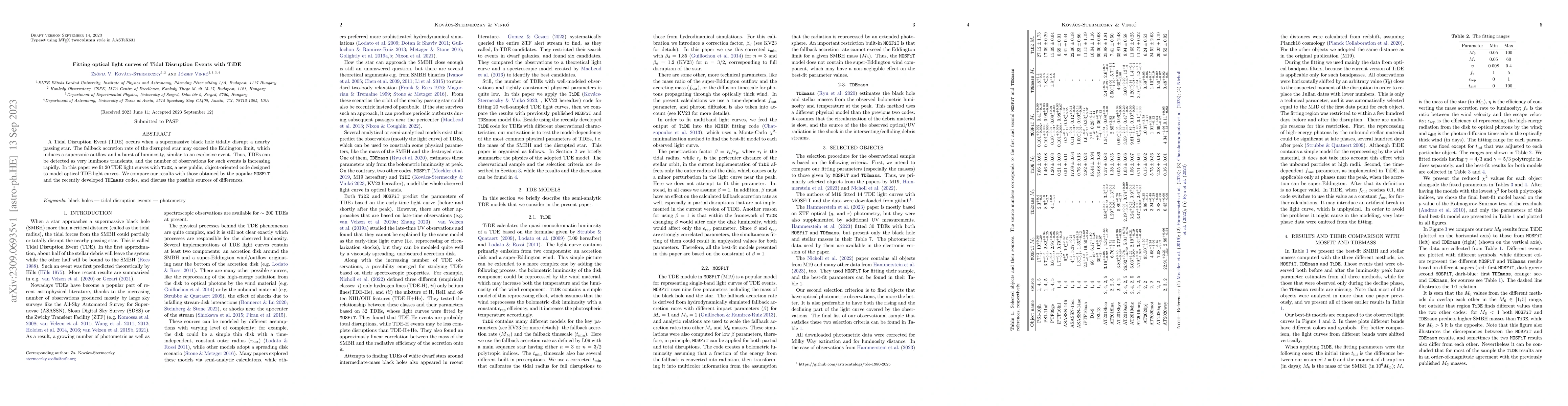 This paper presents the use of TiDE, a new code for modeling optical light curves of Tidal Disruption Events (TDEs), to fit 20 TDE light curves. The study compares TiDE's results with those from MOSFiT and TDEmass, discussing potential discrepancies in the modeling of these luminous transients.