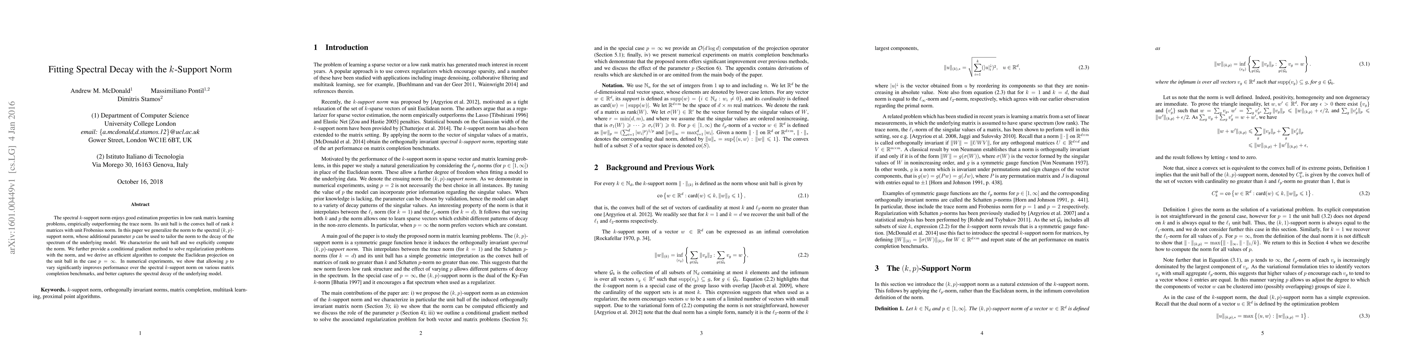 This paper generalizes the spectral $k$-support norm to the spectral $(k,p)$-support norm, introducing a parameter $p$ to tailor the norm to the spectrum decay. It provides a method to compute the norm and an efficient algorithm for its Euclidean projection, demonstrating improved performance over the $k$-support norm in matrix completion tasks.