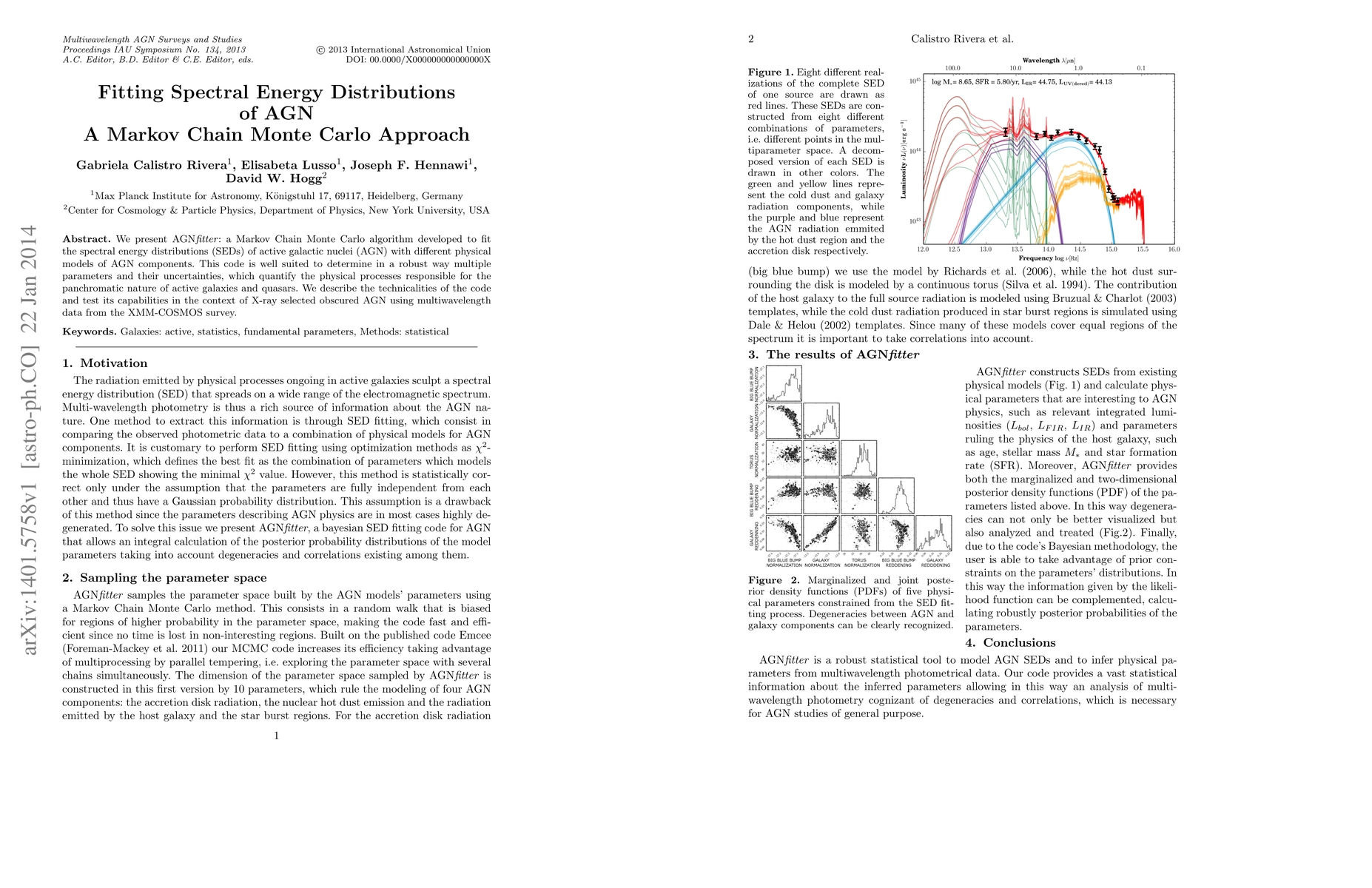 We present AGNfitter: a Markov Chain Monte Carlo algorithm developed to fit the spectral energy distributions (SEDs) of active galactic nuclei (AGN) with different physical models of AGN components. This code is well suited to determine in a robust way multiple parameters and their uncertainties, which quantify the physical processes responsible for the panchromatic nature of active galaxies and quasars. We describe the technicalities of the code and test its capabilities in the context of X-ray selected obscured AGN using multiwavelength data from the XMM-COSMOS survey.