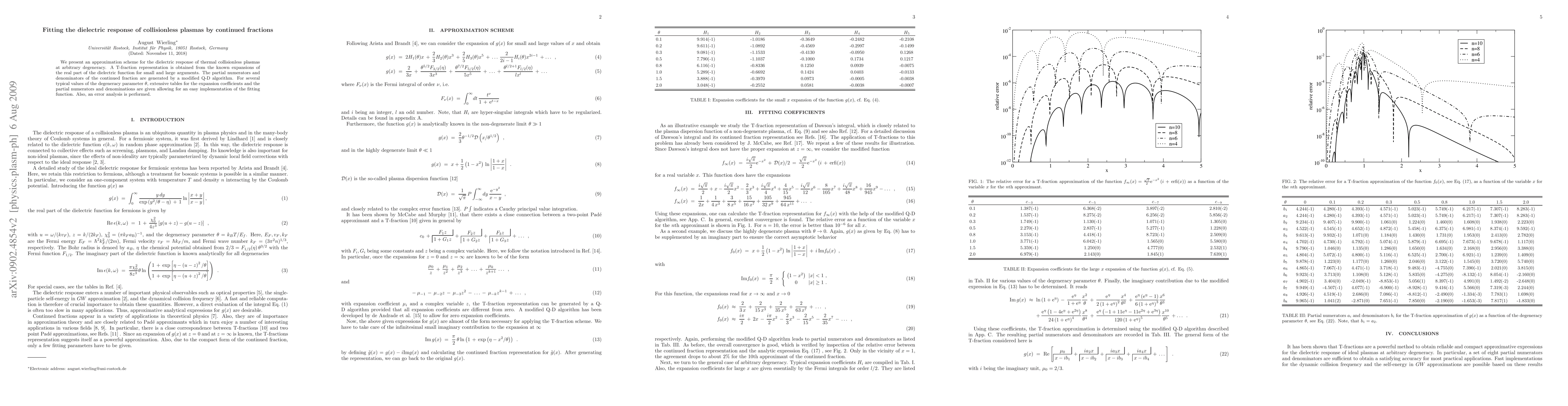 This paper introduces an approximation scheme using continued fractions to model the dielectric response of collisionless plasmas across various degeneracy levels. The method employs a modified Q-D algorithm to generate the necessary coefficients, providing extensive tables for practical implementation and includes an error analysis.
