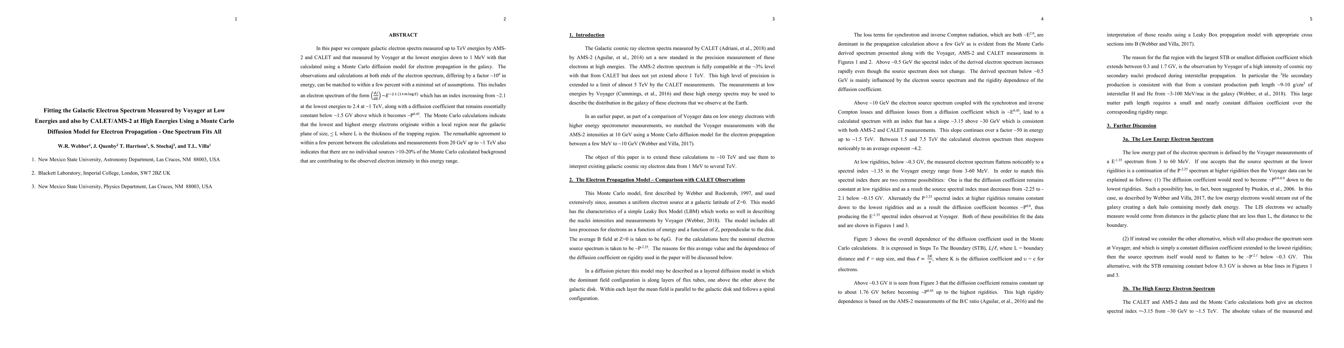 A new study uses a Monte Carlo diffusion model to match galactic electron spectra measured at low and high energies, finding that one spectrum can fit all, with implications for understanding electron propagation in the galaxy.
