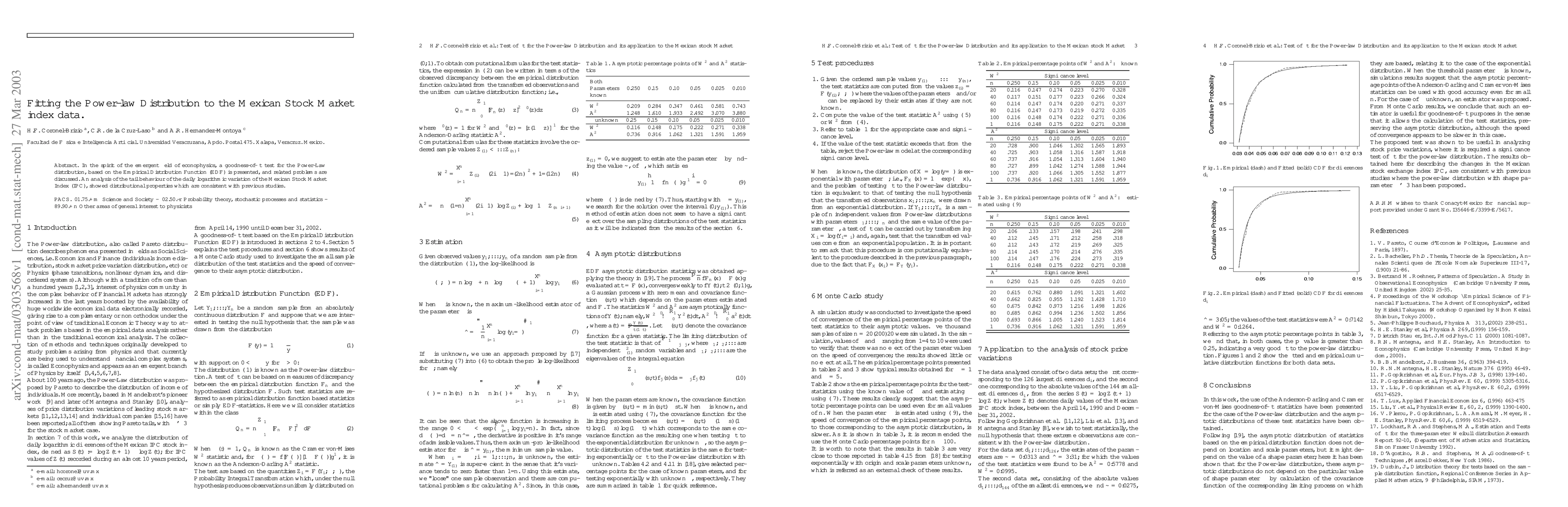 In the spirit of the emergent field of econophysics, a goodness-of-fit test for the Power-Law distribution, based on the Empirical Distribution Function (EDF) is presented, and related problems are discussed. An analysis of the tail behaviour of the daily logarithmic variation of the Mexican Stock Market Index (IPC), showed distributional properties which are consistent with previous studies.